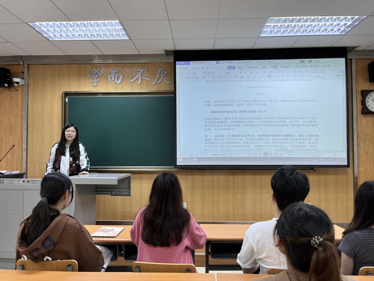 为持续深入学习贯彻习近平新时代中国特色社会主义思想,对标主题教育目标要求,坚守为党育人、为国育才初心使命,弘扬践行“西部红烛两代师表”精神。5月12日,白菜官网本科第三党支部书记马婧为支部党员做了题为《青春心向党,建功新时代》的主题党课学习。本科第三党支部全体党员参加了党课学习。