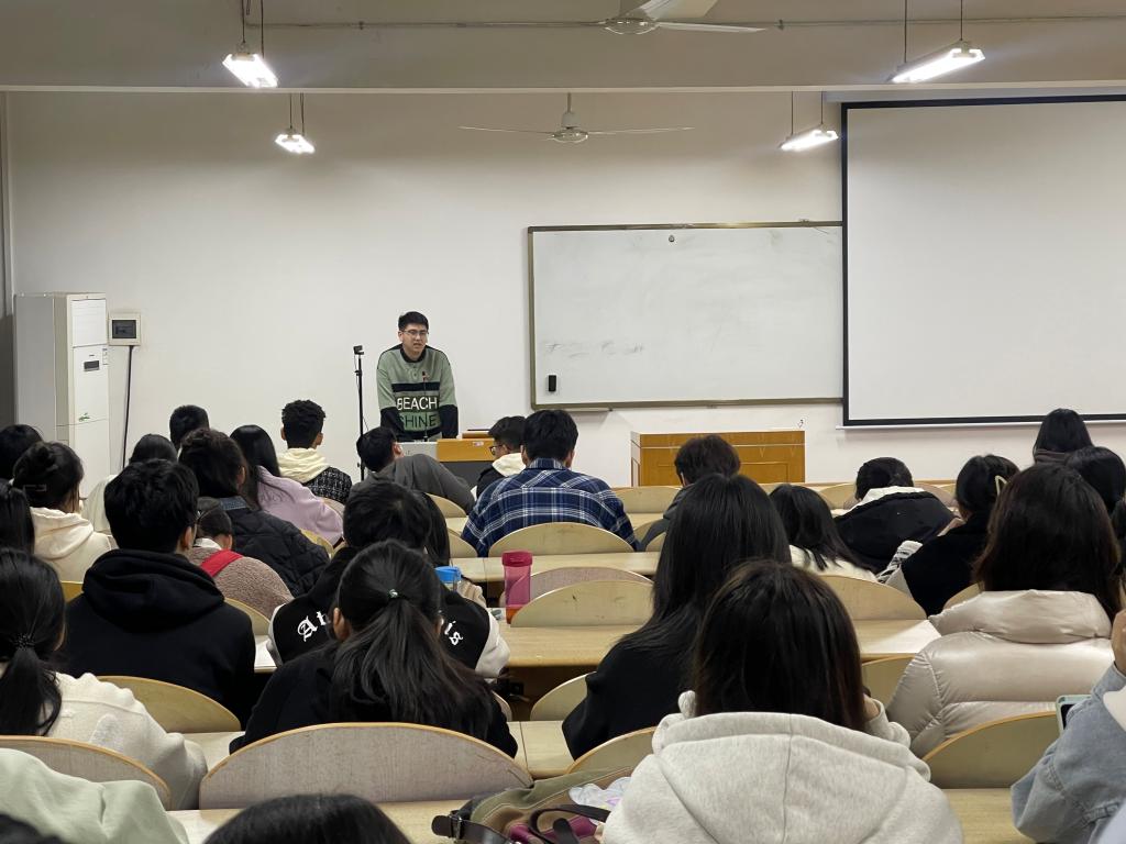 会上,李锦文分享了自己在深圳、南京、北京等多地的实习与求职经历,以及在此过程中遇到的挫折和收获的经验。他结合自己的实际,全面细致地讲述了同学们在实习机会寻找、简历投递、面试等过程的注意事项,并给出切实可行的建议。最后,他鼓励同学们调整心态、增强信心,为更好的职业选择不断努力。