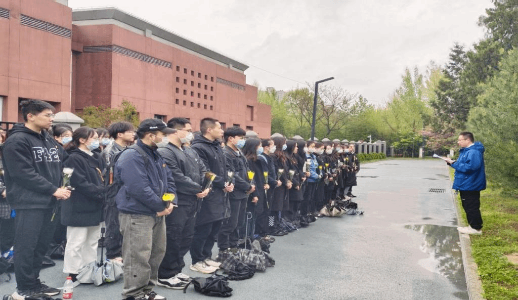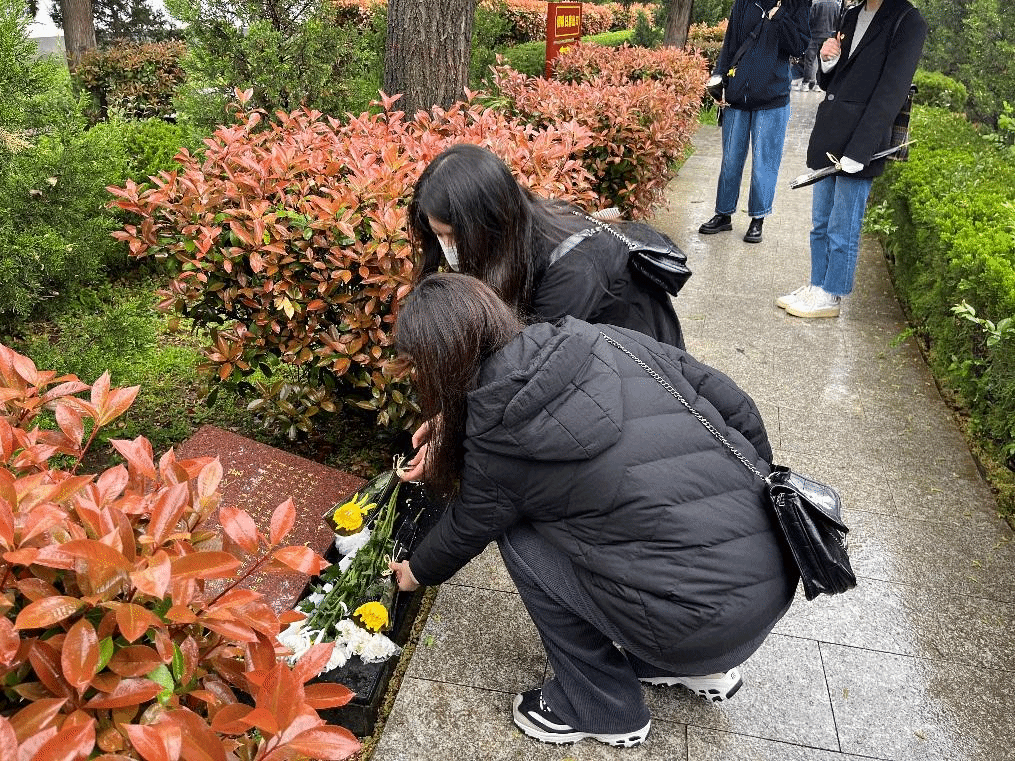 上午八点半,同学们怀着激动的心情从学院出发,到达烈士陵园门口时,陵园已经聚集了众多各行各业前来祭拜革命先烈的人们,同学们感慨到,“千千万万的人都不曾遗忘这些为国家献出生命的先烈。”陵园外庄严又神圣,同学们纷纷自发行注目礼。进入陵园后,全体成员庄严肃穆地列队于烈士墓碑前,向长眠于此的革命烈士默哀,表达深深的哀思。