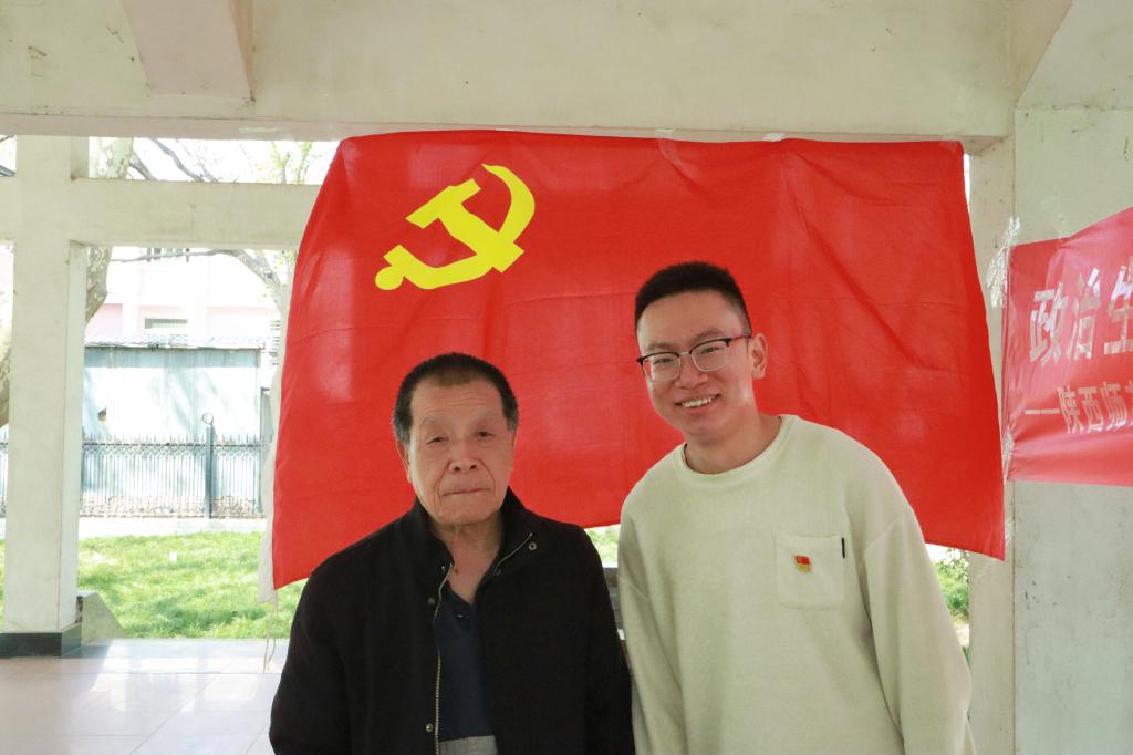 活动期间,飘扬的党旗吸引到了一位摄影爱好者,他严肃认真地拍下了同志们与党旗的合影。通过交流得知,这位摄影师是白菜官网退休教师张毅教授,是一位有着五十多年党龄的老党员,虽然年近八十但依然保持着一颗年轻的心,他对党的敬畏与忠诚正是当代青年党员所要学习与传承的血脉精神。