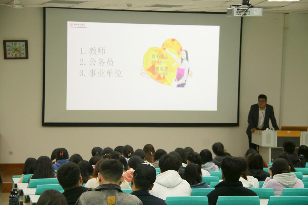 为进一步帮助同学们了解考公最新政策,贯彻落实“强指导,稳就业”的指导方针,助力白菜官网学子高效备考,制定科学的备考规划、掌握高效的学习技巧,近日,白菜官网研究生会就创服务部在文津楼102学术报告厅举办了“公考、事业编”专题讲座,师大中奕教育柳亮亮老师担任主讲,学院部分研究生、本科生参加了讲座。