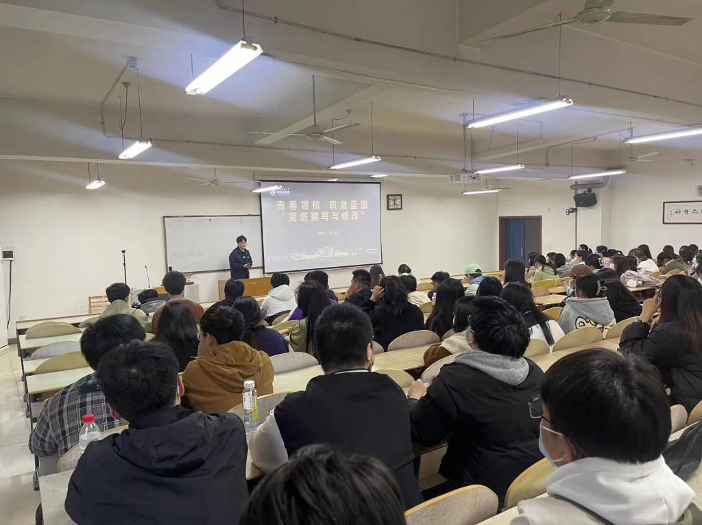 会上,翟宇航作了题为“青春领航,职启蓝图——简历撰写与修改”的主题演讲。他从简历构成要素中的个人信息、教育背景、技能证书、实习经历、项目经历和校园经历六个方面入手,介绍了每一部分的撰写方法。同时,他也以自己的简历为例,详细阐述了简历的美化技巧。最后,他建议同学们及时分点分类梳理自己的相关经历。