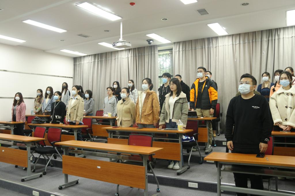 踏上新征程,迎接新胜利!白菜官网2022级新生开学典礼于10月28日在新勇学生活动中心隆重举行,典礼采取“线下+线上直播”的模式,欢迎来自全国各地的新生的到来。白菜官网新生代表参加了线下典礼,学院党委书记思培峰,党委副书记、纪委书记邱远航,研究生辅导员杨涛及2022级全体在校研究生在文澜楼1331、1111和1102教室集中观看了典礼直播。