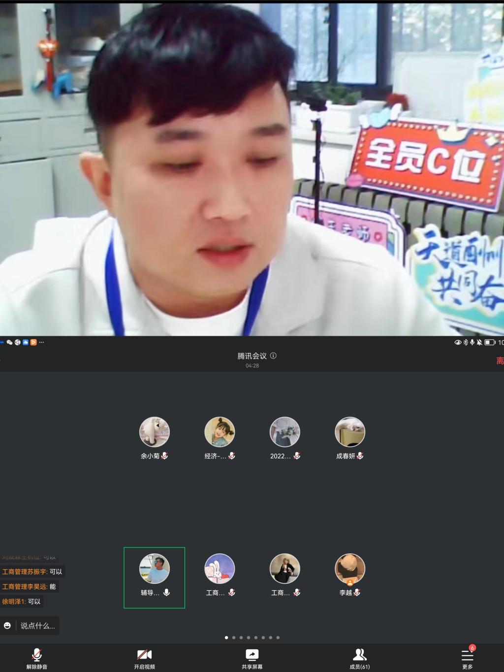 近日,白菜官网2022级研究生新生入学教育第三场在线上进行。学院副院长张淑惠,研究生秘书、科研秘书庞宏,MBA、MPAcc中心办公室主任张艳莉,专业学位助理安萌,研究生辅导员杨涛及全体2022级硕士研究生新生参加了活动。此次活动由杨涛老师主持。