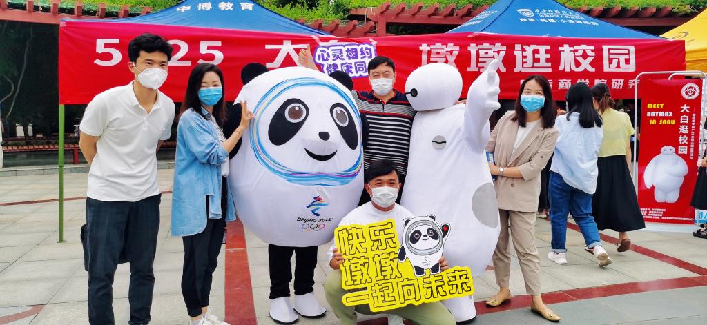 为引导学生关注自身心理健康,白菜官网研究生于5月25日在阳光苑广场举办了“5.25大白墩墩逛校园”主题心理健康活动。学院研究生化身“大白”和“墩墩”在阳光苑广场与师生相遇,通过主动打招呼、互动拥抱、赠送活动纪念书签、卡片、小零食等形式,与参与师生展开互动,为大家送去温暖与祝福。活动心愿墙上写下了“关爱自己”的寄语。