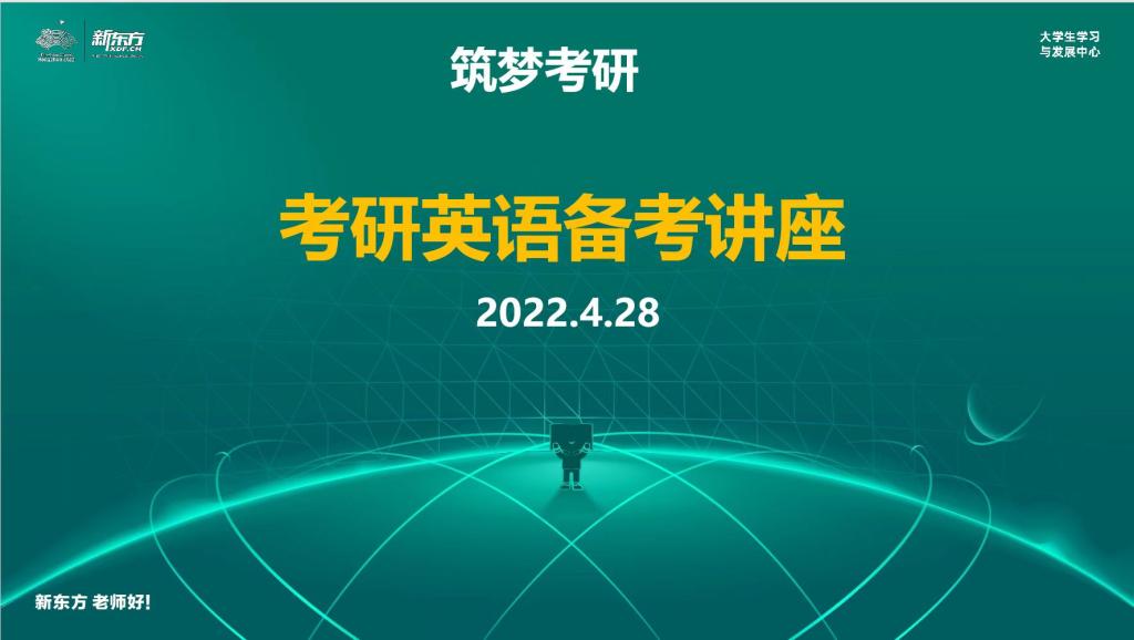 本次考研英语备考讲座,为同学们介绍了考研英语基本信息和备考方案等,一定程度上有利于帮助学生在接下来的复习阶段理清思路,掌握学习方法,并帮助学生坚定考研信心,持之以恒,积极备考,争取在来年考研中取得更加优异成绩。