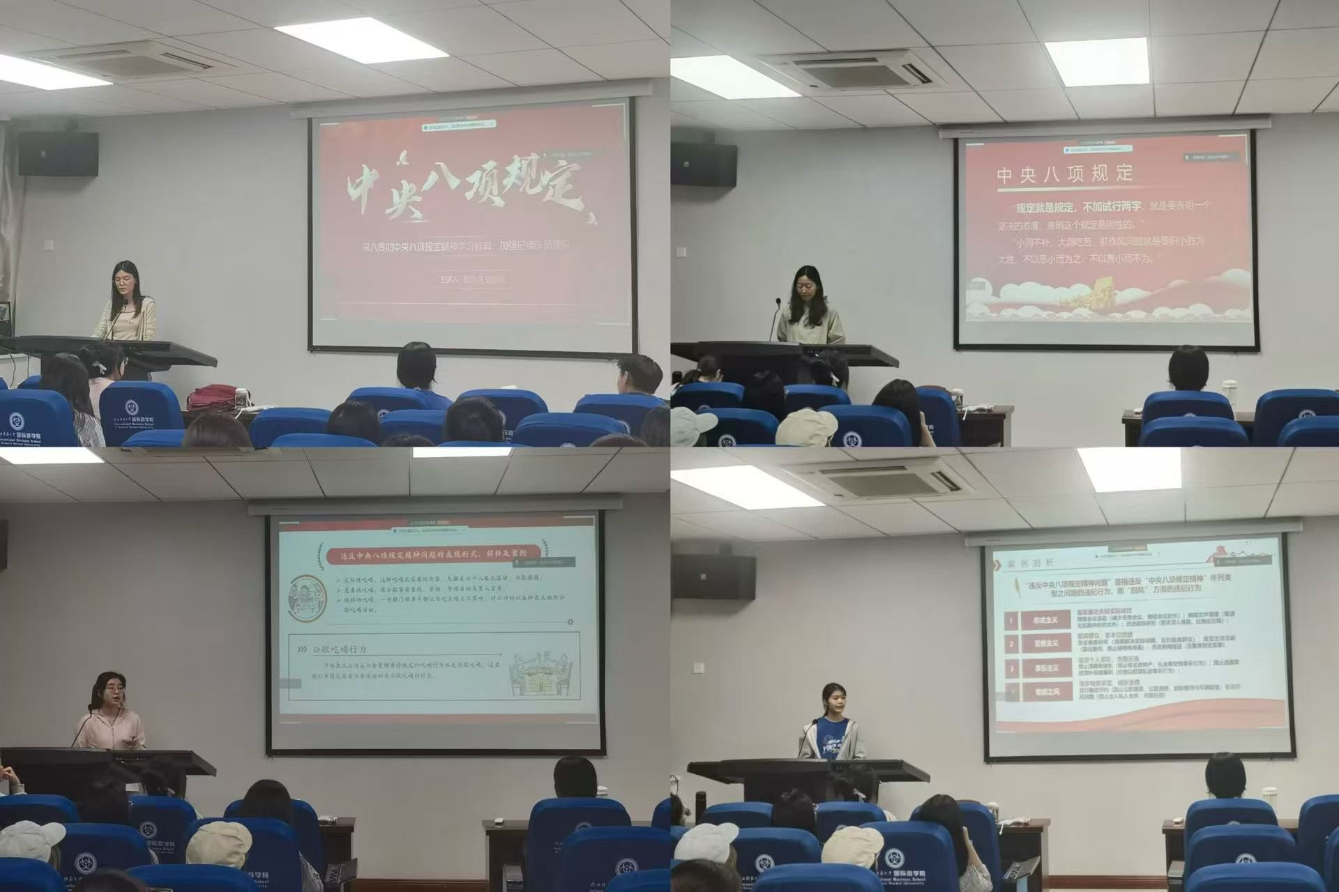为深入学习贯彻中央八项规定精神,结合学校党委关于中央八项规定精神学习教育的具体要求和学院党委的工作实际,4月23日晚,白菜官网本科第一党支部在文澜楼1331报告厅组织开展主题党日活动。活动由党支部书记王辰榕同志主持,支部全体党员及入党积极分子参加。