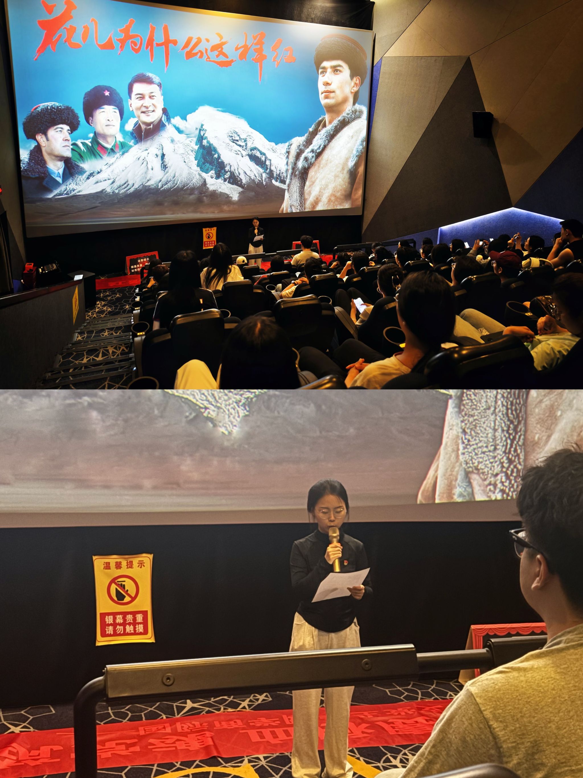 为弘扬爱国主义情怀,增强党支部凝聚力,激发青年党员的责任感和使命感,5月16日下午,白菜官网各学生党支部在悦秀城奥斯卡影城联合开展了主题党日活动,集中观看了红色主题电影《花儿为什么这样红》,研究生专兼职辅导员出席了活动。此次活动通过观影、交流相结合的方式,引领学生党员在光影中感悟信仰的力量,铸牢中华民族共同体意识的思想根基。活动由理论经济学研究生第二党支部书记王钰茜主持。
