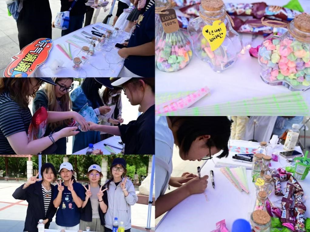 活动当天,学院的展位被温馨的星星灯点亮,桌上摆放着漂流瓶、彩纸、马克笔等材料,等待同学们赋予其特别的意义。同学们热情参与,将心情写在纸条上叠成星星投进对应的瓶子,参与者在匿名的情况下可以写下自己的秘密,同时也有机会成为他人的心灵守护者,给与温暖鼓励。通过这种独特的方式,搭建起陌生人之间心灵沟通的桥梁,传递温暖与力量,助力大家舒缓情绪、收获慰藉。