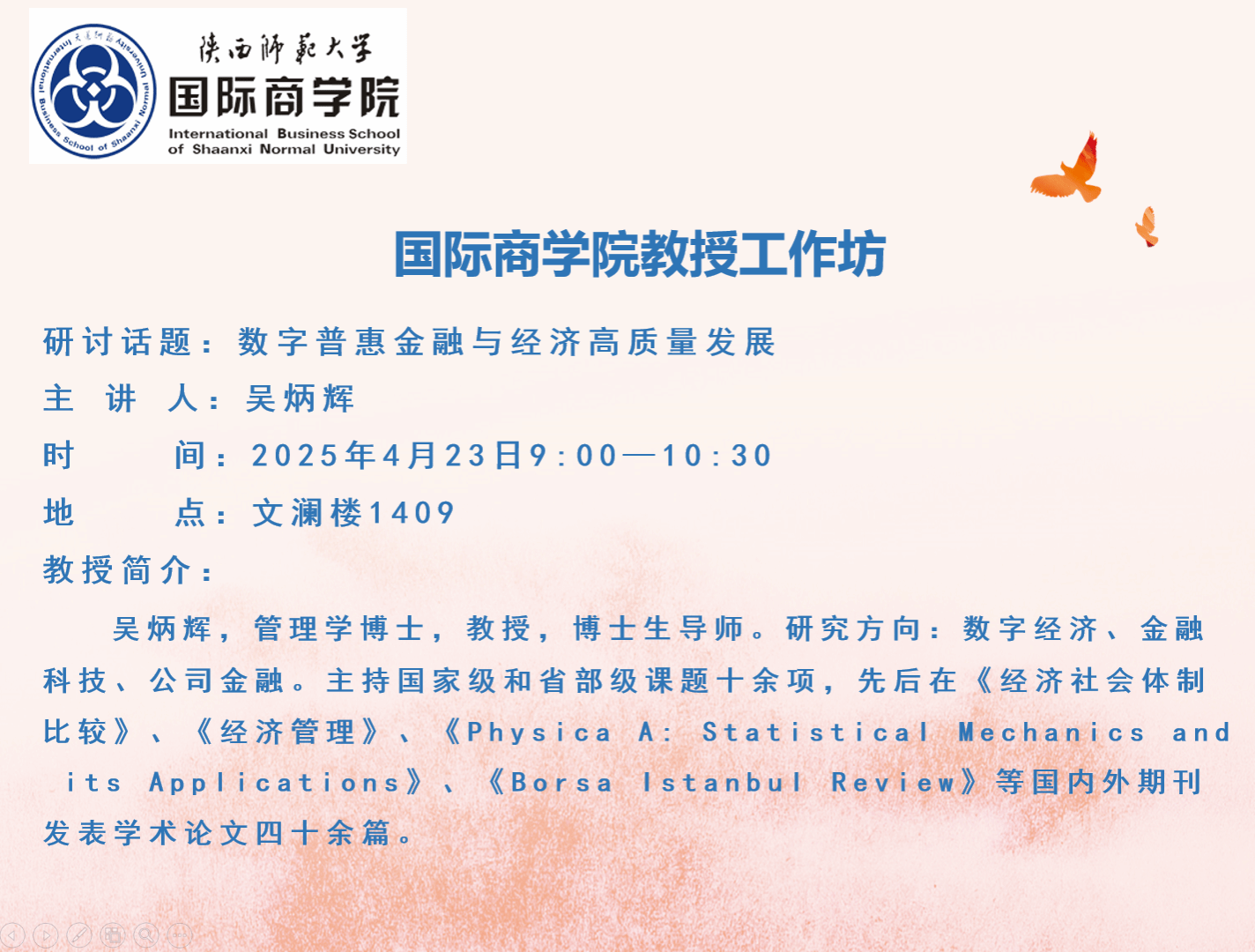 600cc全讯白菜网教授工作坊——数字普惠金融与经济高质量发展