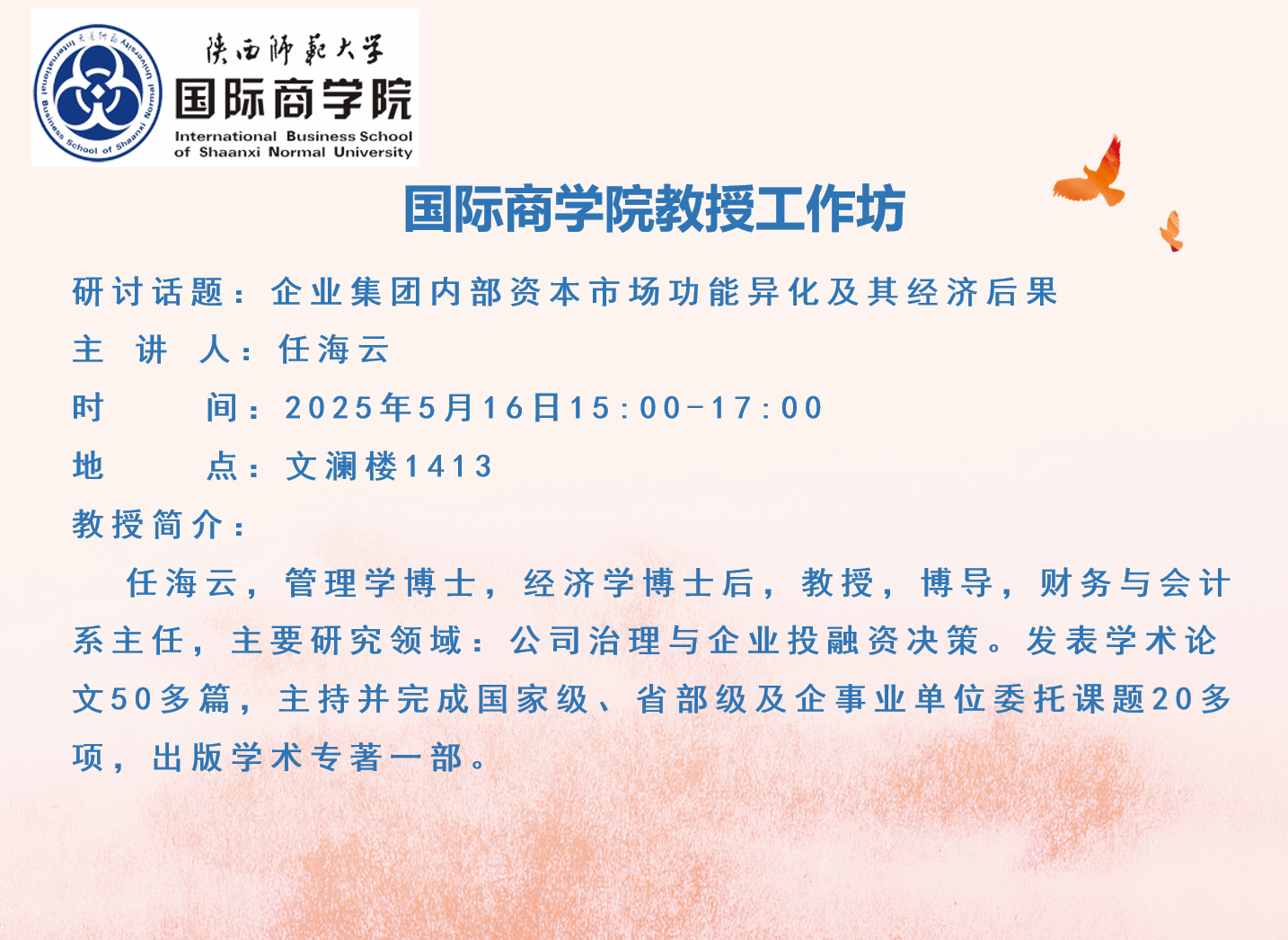 600cc全讯白菜网教授工作坊——企业集团内部资本市场功能异化及其经济后果