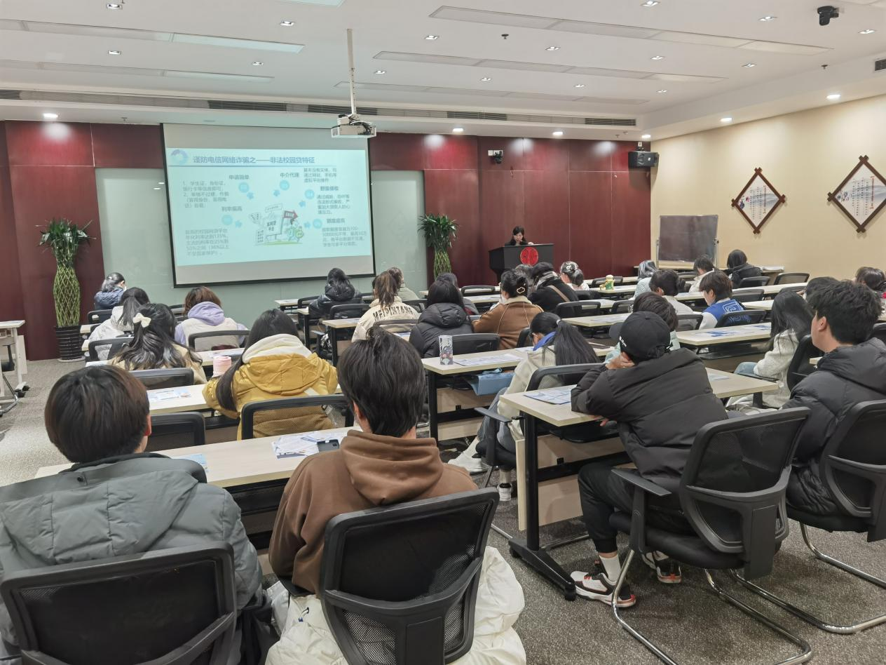 首先,公司财富管理部副总经理芦康为同学们做了关于中信建投证券股份有限公司和全面注册制的报告。报告具体包括四个方面的内容:第一部分公司介绍,第二部分股票发行注册制改革与资本市场的发展,第三部分全面注册制的重要变化,第四部分中信建投证券投行业务和服务陕西市场简介。随后,温雪琴经理对电信网络诈骗和非法证券活动的各类典型案例进行了分析,帮助同学们了解在日常生活中如何规避各种形式的诈骗行为,呼吁大家提高风险防范意识,培养社会责任感。最后,雷宏振院长对在证券公司等金融行业就业的前景和同学们进行了交流。