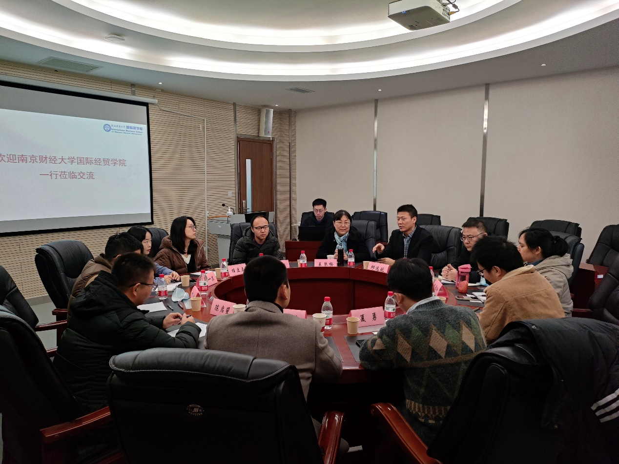11月27日上午,南京财经大学国际经贸学院副院长陈启斐一行来访白菜官网学习交流。白菜官网党委副书记、纪委书记邱远航,各系主任及教师代表参加了座谈。