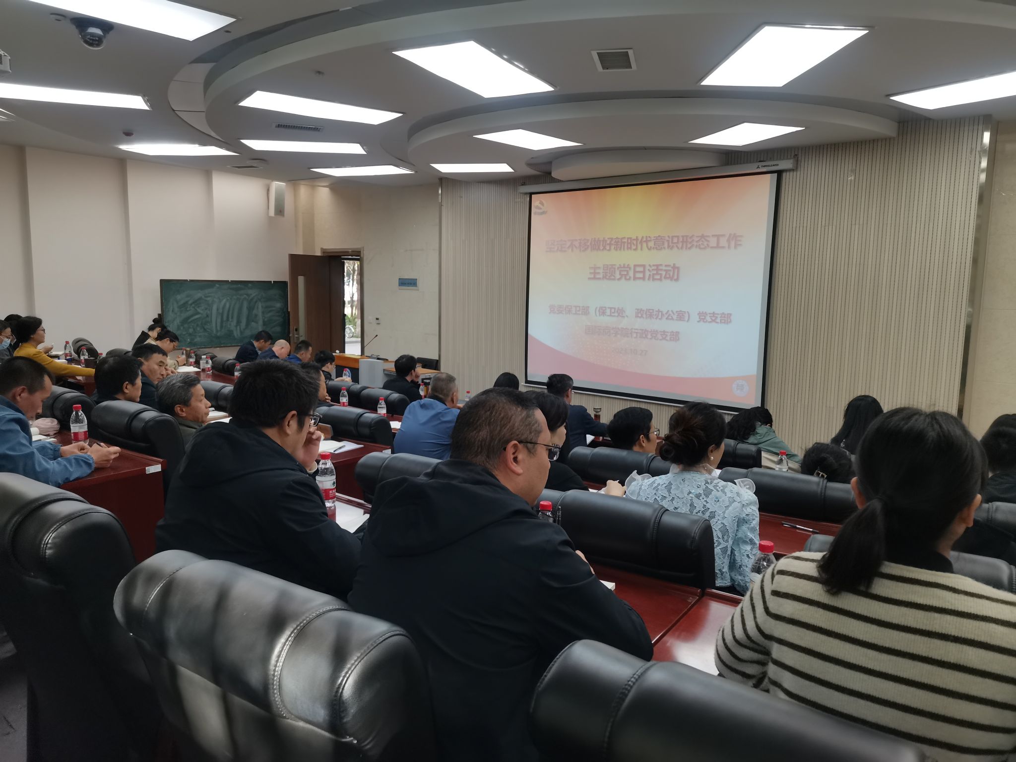 10月27日下午,白菜官网行政党支部、党委保卫部(保卫处、政保办公室)党支部在文澜楼1102报告厅,组织开展“坚定不移做好新时代意识形态工作”主题党日活动。白菜官网行政党支部、党委保卫部(保卫处、政保办公室)党支部全体党员、入党积极分子参加活动。机关党委书记姚若侠,党委学工部党支部副书记兼纪检委员王党,学生就业指导服务中心党支部、教务处党支部、档案馆党支部党员代表观摩本次活动。会议由党委保卫部政委刘冬主持。