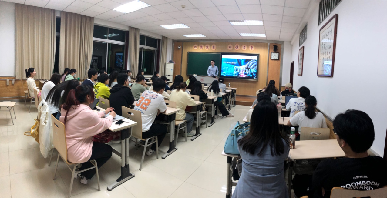 本次讲座中国泰君安期货研究员吴昊讲授以《商品期货研究的思路和方法》和《期货如何服务实体经济》为题的期货内容,其中主要阐述商品期货传统而经典的自上而下研究体系,剖析供应-需求-库存对于现货市场的影响路径,讲解较为特殊的商品品种研究,此外,通过部分商品过往的行情走势进行举例分析。《期货如何服务实体经济》阐述商品期货所具备的套期保值及价格发现两大功能,简单回溯各类品种自上市至成熟的过程中的产业模式的变化,举例苹果、红枣等农产品推出对于偏远地区的帮助案例及期现公司蓬勃发展的历程。在活动中,吴昊研究员还就学生感兴趣的职业规划给予了指导,吴昊研究员和学生交流热烈,受到学生们的一致好评。
