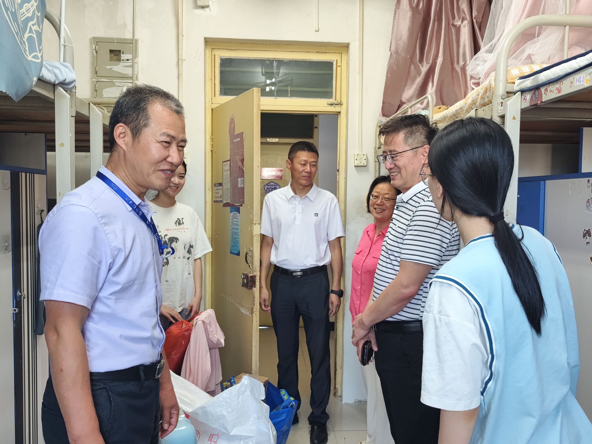 上午8时,学院院长雷宏振,党委书记思培峰,党委副书记、纪委书记邱远航一同来到学院迎新点看望研究生新生,关切新生入学报到情况,指导现场工作并慰问服务在迎新一线的工作人员。下午16时30分,学院党政领导班子和研究生辅导员前往宿舍园区看望2023级研究生新生。学校领导亲切询问新生们的报到、住宿、食堂就餐情况,耐心倾听新生们的疑虑和困惑,给予详尽解答和指导,鼓励大家积极适应新环境,融入新集体。新生们也表示会珍惜研究生生活,勇敢追梦,不负韶华。