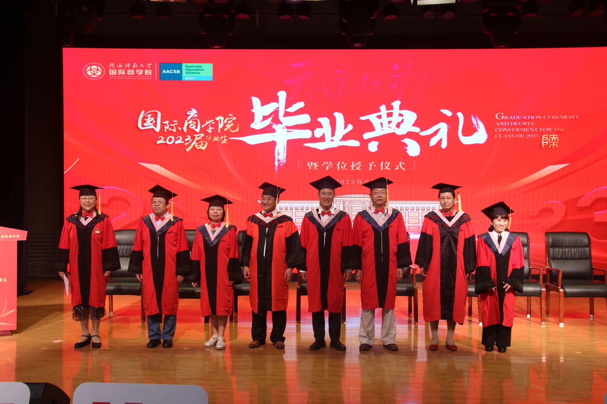 六月仲夏,凤凰花开。6月27日上午,白菜官网2023届毕业生毕业典礼暨学位授予仪式在新勇活动中心二层学生剧场隆重举行。白菜官网院长雷宏振,党委书记思培峰,副院长杨静、史恒通,博士点主任王琴梅以及学院教师代表参加了毕业典礼,校党委研究生工作部部长王耀明,校党委学工部副部长王党,校学生就业指导中心副主任姚崇,校团委副书记高扬应邀出席了毕业典礼。毕业典礼由学院党委副书记、纪委书记邱远航主持。