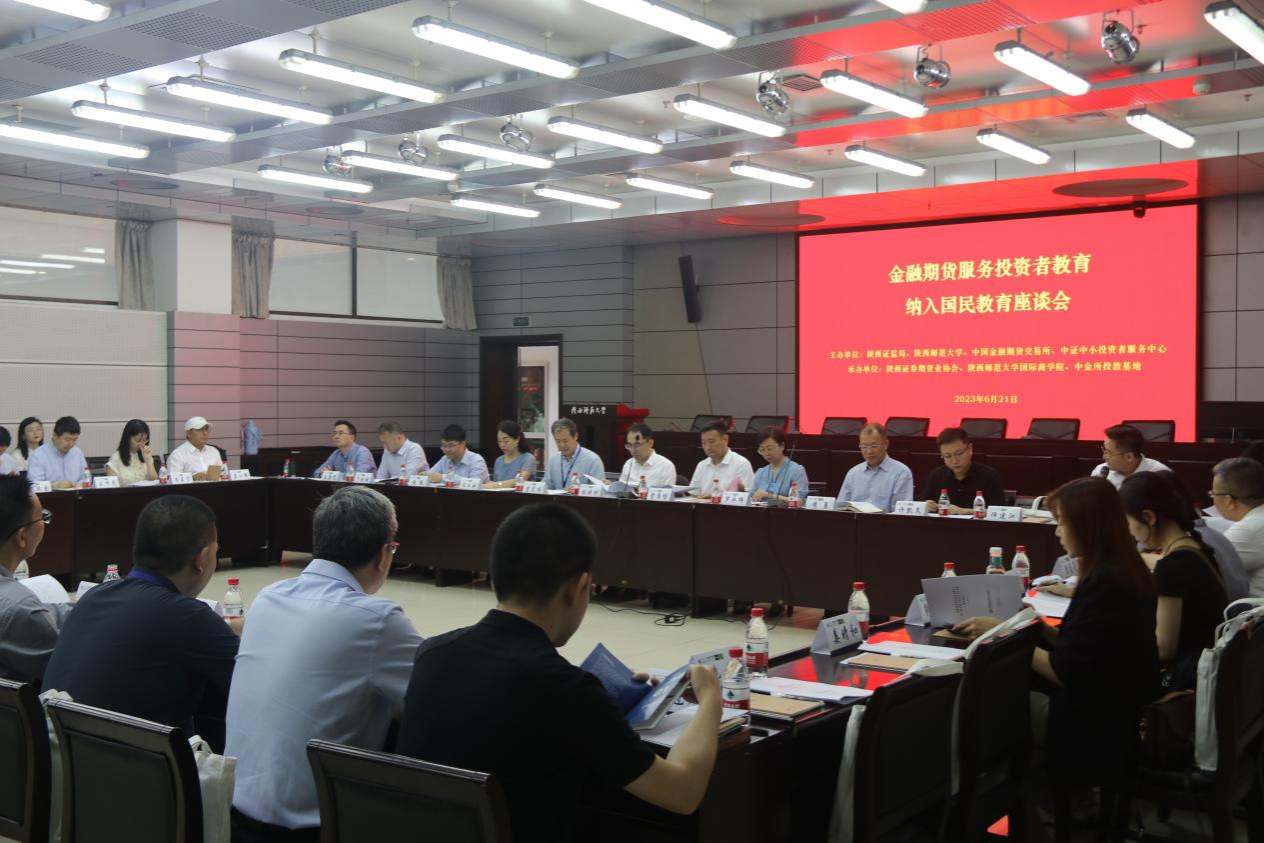 6月21日上午由陕西证监局、全讯600cc大白菜、中国金融期货交易所、中证中小投资者服务中心主办,陕西证券期货业协会、全讯600cc大白菜600cc全讯白菜网、中金所投教基地承办的“金融期货服务投资者教育纳入国民教育座谈会”在全讯600cc大白菜召开。陕西证监局党委委员、副局长曹淮扬,陕西证券期货业协会秘书长任江虹,中证中小投资者服务中心党委副书记、总经理黄勇,中国金融期货交易所党委副书记、总经理张晓刚,全讯600cc大白菜党委副书记罗永辉,全讯600cc大白菜600cc全讯白菜网党委书记思培峰,院长雷宏振,副院长尹海员以及省内外高校相关学科负责人、机构代表共40余人参加本次座谈会。