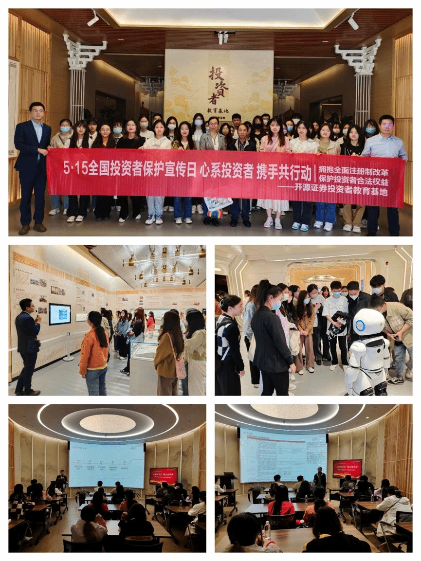 5月11日下午14:00,开源证券投教基地开展“5·15全国投资者保护宣传日”主题活动,600cc全讯白菜网金融学系曹培慎老师、李淑娟老师带领金融2001班全体同学前往参与。活动通过基地参观和金融知识课堂两大环节向同学和老师全面介绍资本市场发展历程及当前市场规则变化。