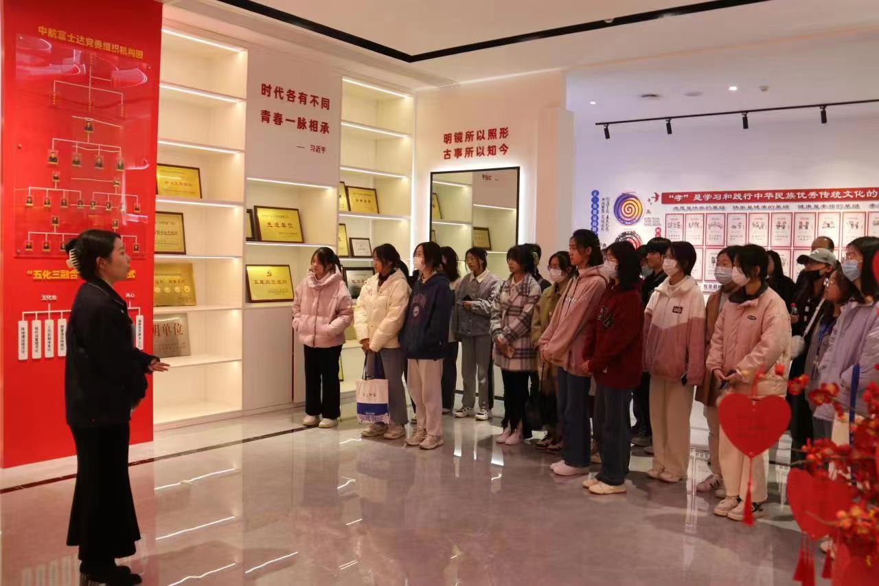 首先,公司副总监徐明带领师生参观了公司历史馆与产品展厅,详细介绍了公司自创立以来围绕航空工业领域的研发、生产和销售情况,加深了同学们对于实体经济、工业制造以及国家核心尖端科技创新领域的行业了解。随后在了解保密纪律与确保保密措施下,同学们又进入到生产制造、产品检验、技术研发等实验室和车间,参观一线平台运行实况,了解高科产品生产、检验等核心业务环节,听取实验室负责人讲解企业产品研发与企业管理之间的关相互关系与实际运行情况。