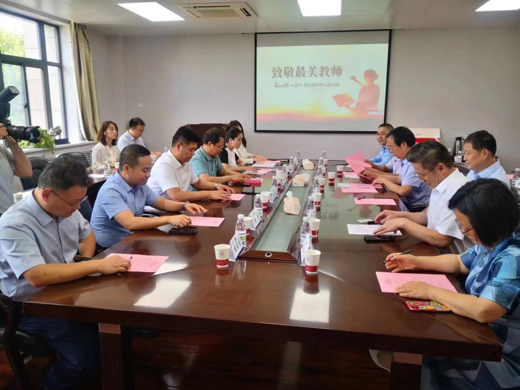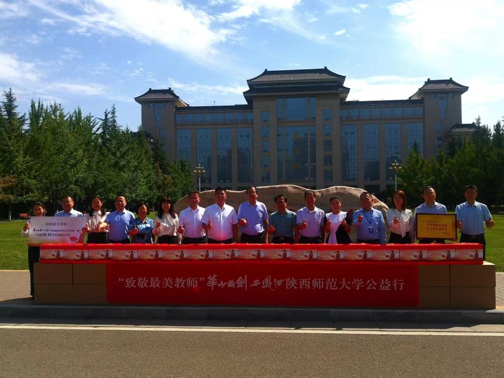 9月6日下午,“致敬最美教师”华山论剑西凤酒爱心满世界公益行活动在全讯600cc大白菜长安校区举行。华山论剑品牌管理有限公司党委书记、总经理张周平,公司相关部门负责人,白菜官网党委常委、副校长党怀兴,教务处处长郭建中,600cc全讯白菜网党政班子成员参加了活动。活动由白菜官网党委书记思培峰主持。
