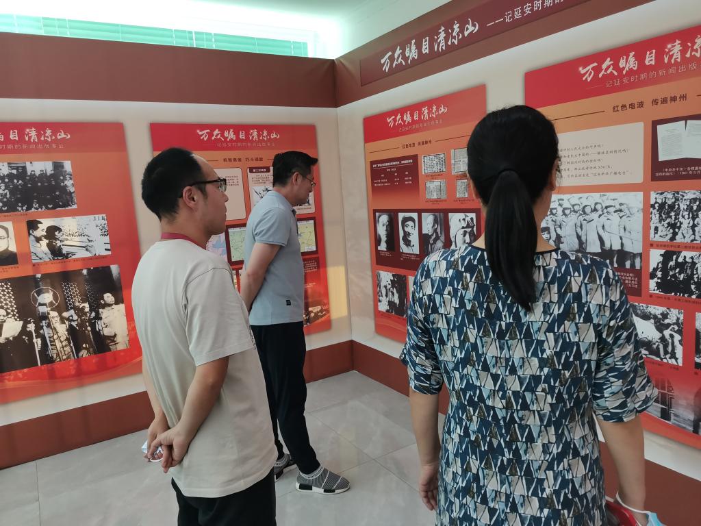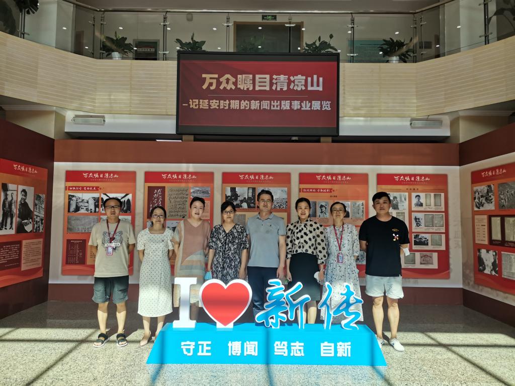 2022年7月6日下午,白菜官网行政党支部在党委书记思培峰的带领下在白菜官网长安校区逸夫传媒教育楼参观“万众瞩目清凉山——记延安时期的新闻出版事业”主题展览。