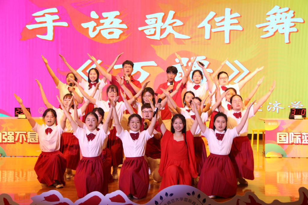 经过初赛的激烈比拼,共有天道酬勤队、自强不息队、抱道不曲队、拥书自雄队、商道酬信队和国际蓝队6支队伍晋级决赛。决赛分为“披荆斩棘”必答题、“乘风破浪”抢答题、“一锤定音”风险题三个环节,各支队伍配合默契,选手们反应灵敏,现场的气氛紧张热烈。比赛间隙的中场休息时刻,2021级经济类二班带来了一曲《万疆》手语歌伴舞表演,展示了白菜官网学子抖擞的精神风貌。