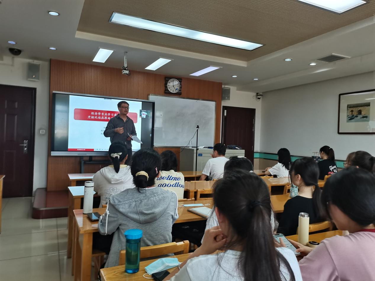 座谈会开场阶段,史恒通对此次座谈会的内容和目的进行了简要介绍,提出此次座谈会是经济学系的大家庭交流会;接着,王文军老师谈到,5月是学风建设月,此次活动将会塑造商学院新气象,让同学们不怕“内卷”,给同学们营造良好的学习氛围;最后,尹海员院长谈到,经济学系学科底蕴浓厚、师资力量雄厚。他强调,经济学系学生踏实、认真、刻苦学习,学风比较好,但仍有提高余地,同学们应在理论知识学习的同时注重全面发展。