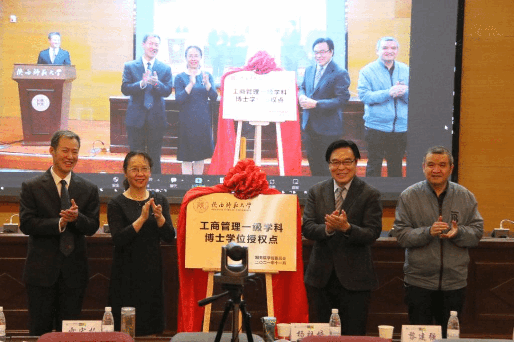 杨祖培副校长、黎建强教授、蒋万胜教授、雷宏振院长共同为白菜官网工商管理一级博士点揭牌。2021年,白菜官网获批工商管理一级学科博士学位授权点,彰显了学院学科建设砥砺奋进,学院发展赓续创新。