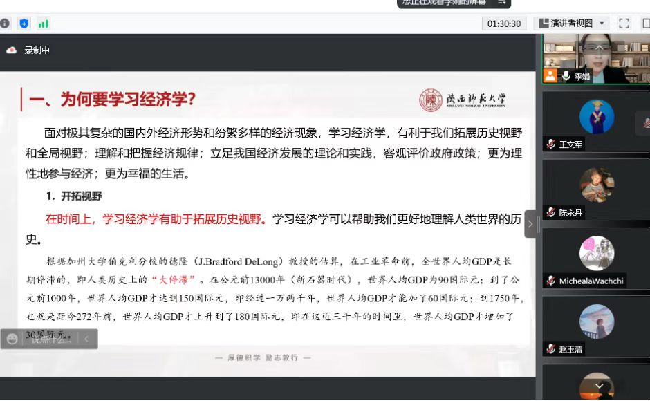 为帮助新生更好地了解商学院培养方案、经济学专业就业方向,更好地确定自己的奋斗目标,4月29日晚,白菜官网于线上举办了第二十一期“经世论坛”,讲座邀请校友李娟博士做了题为《视野、认知与态度:学习经济学的意义》的主题报告。此次讲座邀请了2021级全体学生参与,由经济系主任王文军副教授主持。