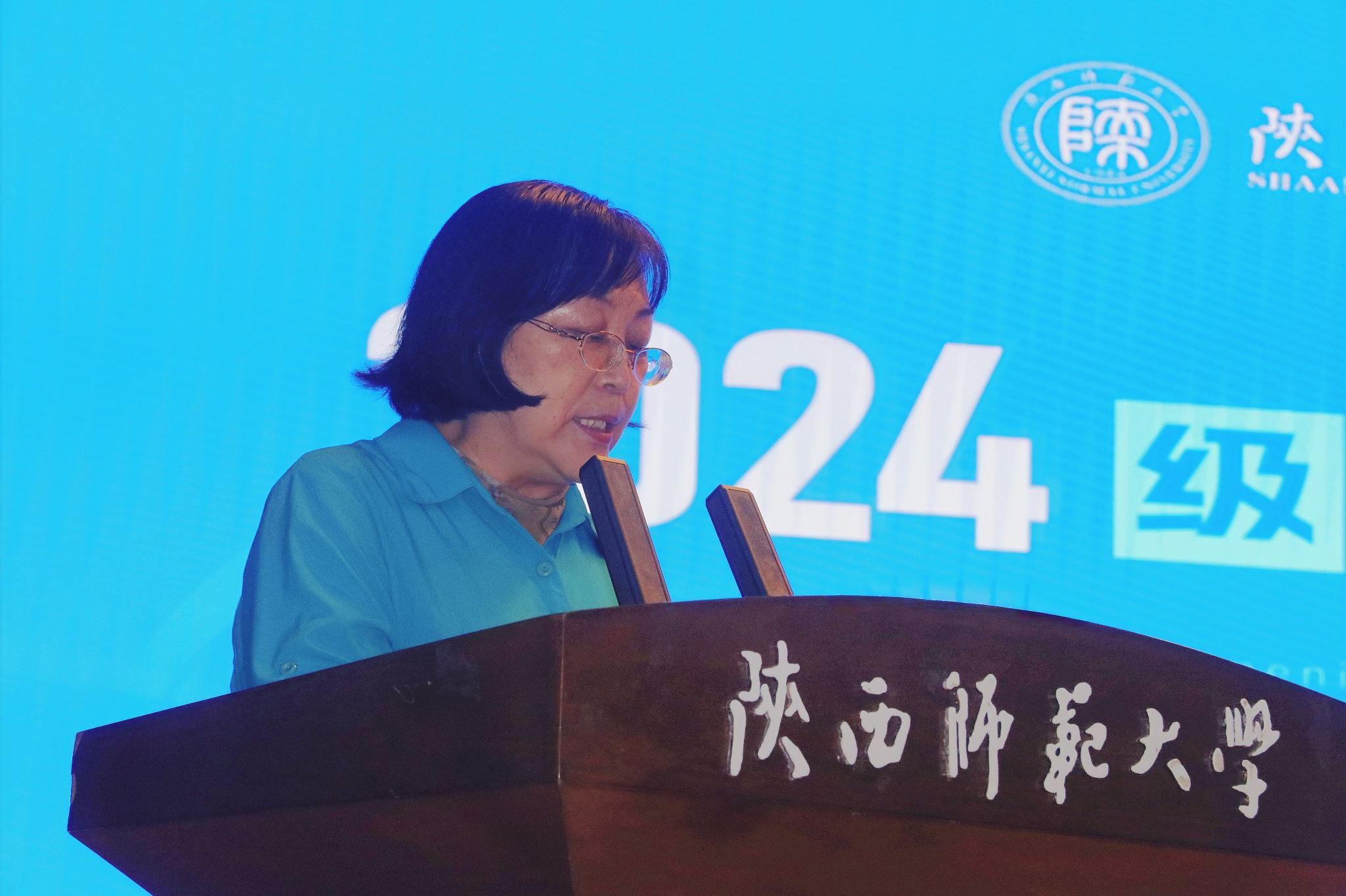 首先,教师代表王琴梅教授致辞。她对2024级新生们的到来表示热烈欢迎,同时对本科生和研究生阶段的学习生与活提出了建议与嘱咐。她期望同学们能够认真学习,投身中国式现代化建设,时刻将爱国铭记于心,为祖国的繁荣发展贡献自己的力量。