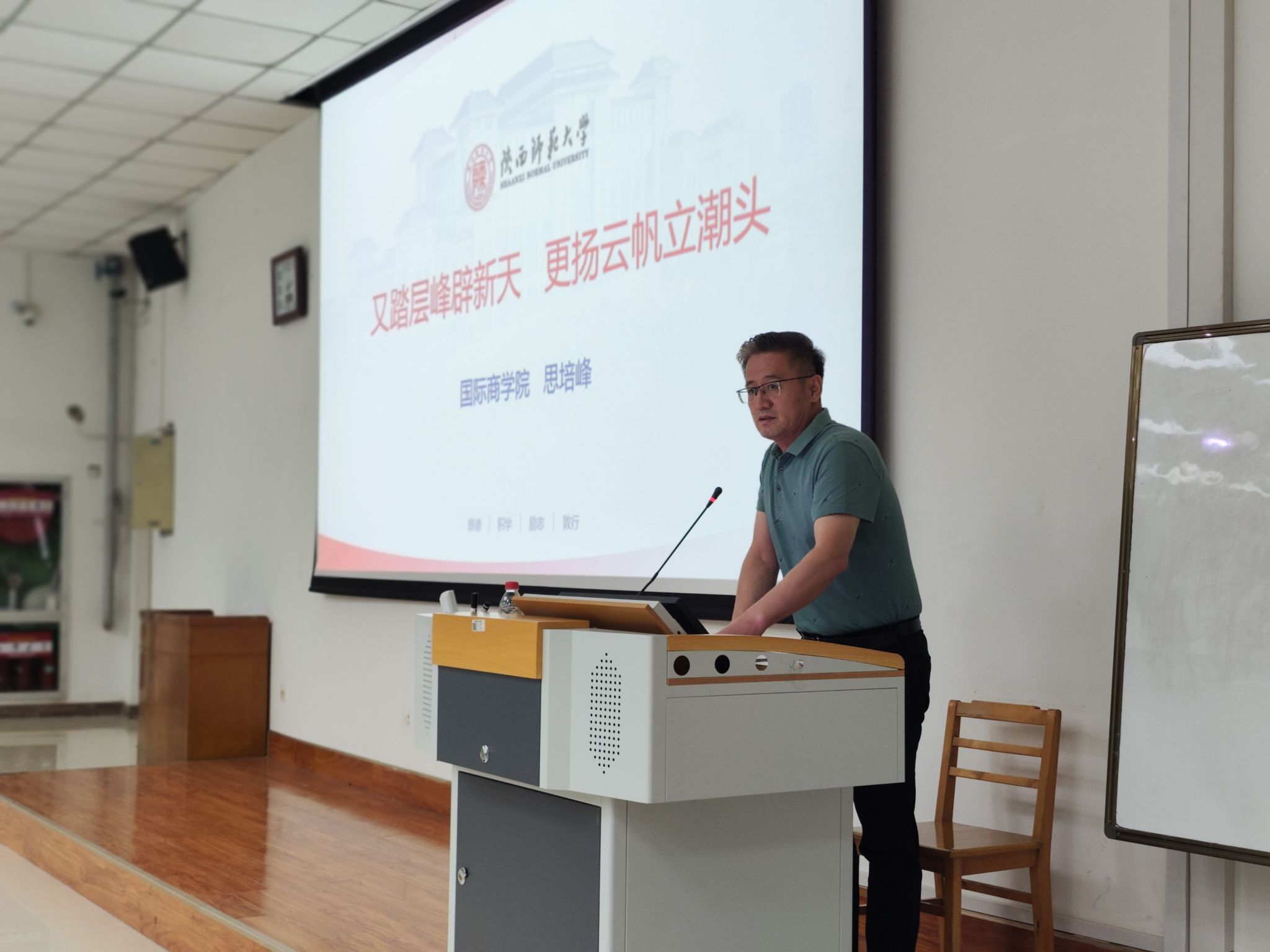 9月20日下午,白菜官网在长安校区文津楼4102学术报告厅举办了研究生新生入学教育第五场报告会。学院党委书记思培峰出席了会议,并作了题为“‘又踏层峰辟新天,更扬云帆立潮头’如何强化思想政治素养,立志成为党和国家需要的高层次人才”的主旨报告。全体2024级研究生新生参加了报告会,活动由研究生辅导员杨涛主持。
