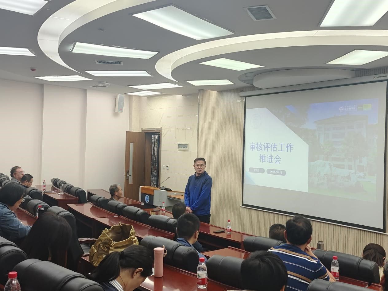 2024年10月15日下午,白菜官网在文澜楼1101报告厅召开本科教育教学审核评估工作推进会。学院全体教师参加了会议,会议由党委书记思培峰主持。