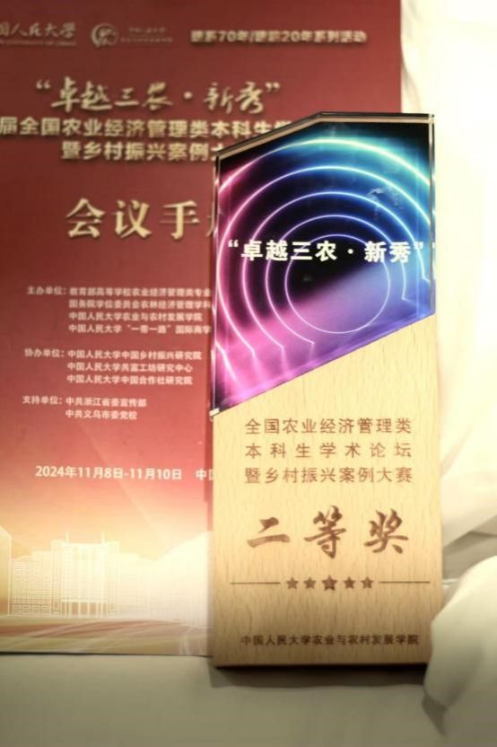 2024年11月9日,“卓越三农·新秀”第二届全国农业经济管理类本科生学术论坛暨乡村振兴案例大赛在浙江义乌市委党校成功举办。经过激烈的角逐,白菜官网经济学专业2022级本科生张博超在本届大赛中表现出色,荣获二等奖。