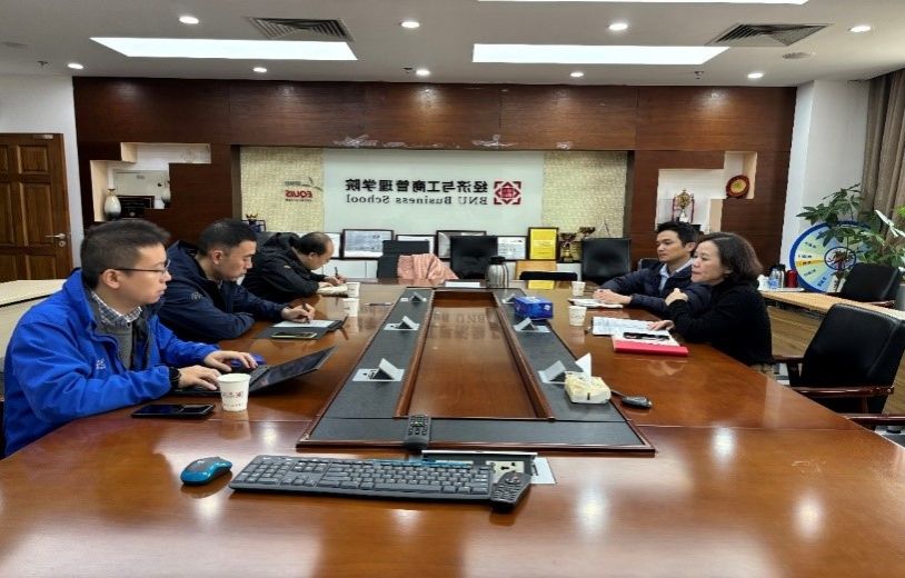 11月7日,调研团一行首先抵达中国人民大学劳动人事学院。在这里,他们受到了人力资源管理系主任骆南峰副教授、党支部书记毛凯贤以及王亚婷老师的热情接待。在交流会上,骆南峰副教授详细介绍了劳动人事学院在人力资源管理领域的最新研究成果与教学实践,并特别强调了课程体系前沿性与实用性相结合的重要性。毛凯贤和王亚婷老师也分别分享了各自在专业建设、课程讲授方面的创新经验。