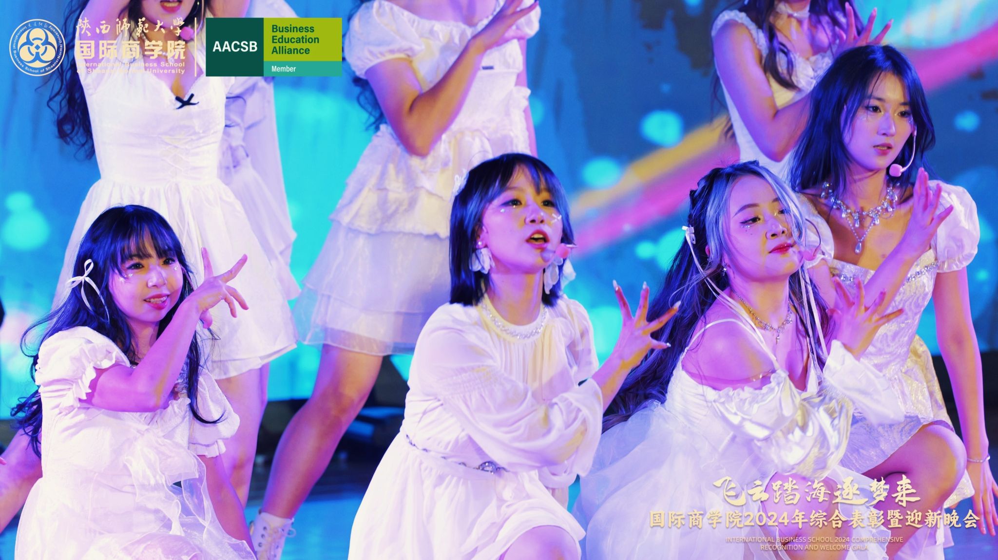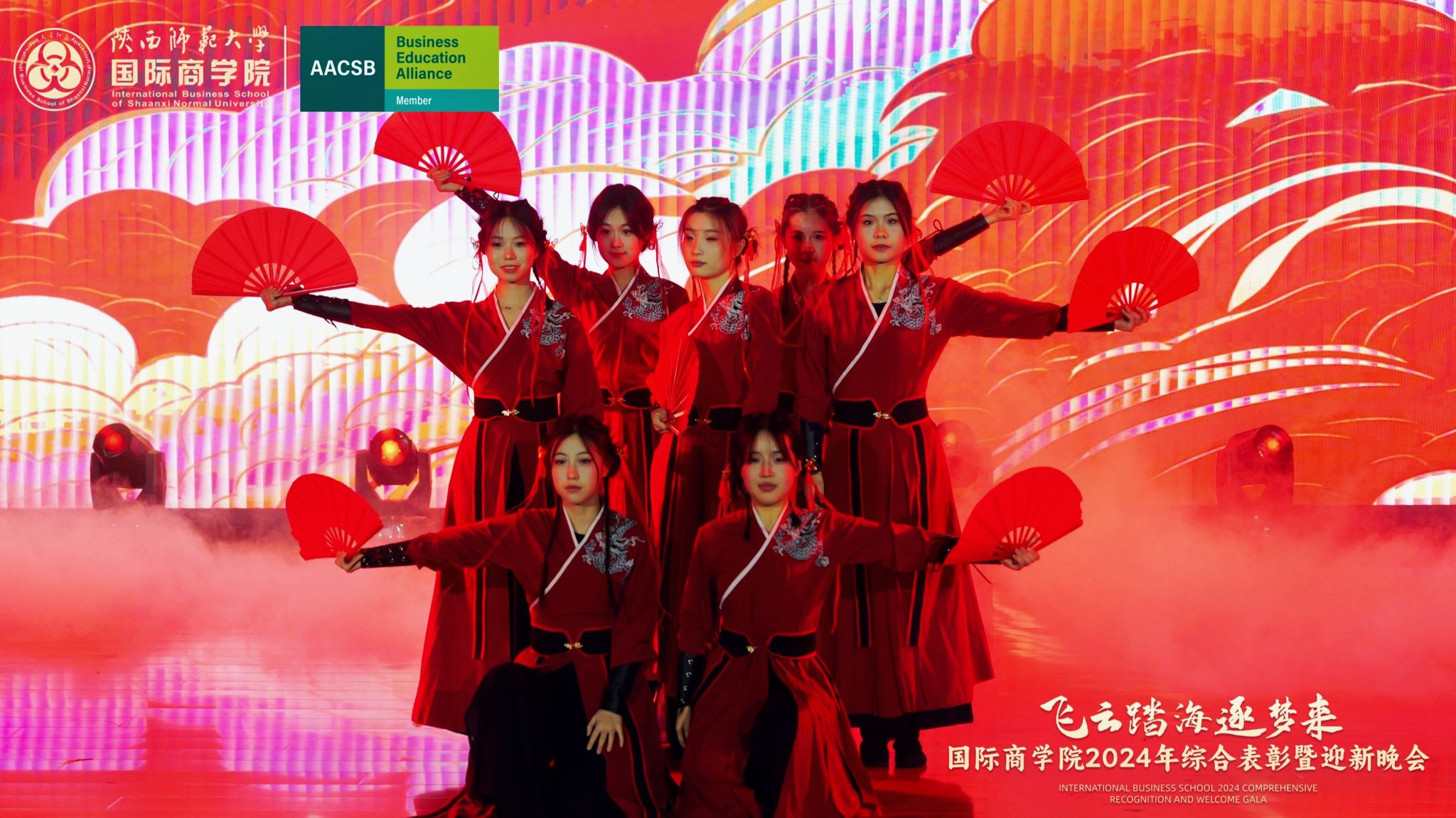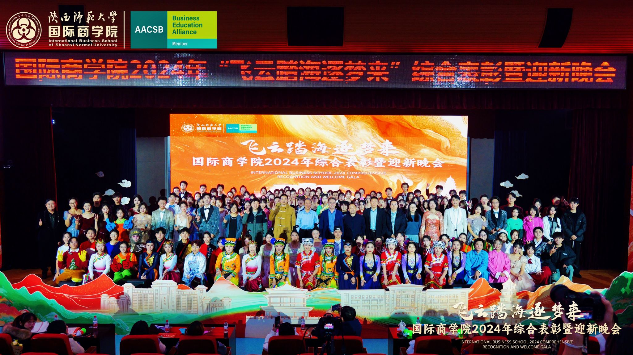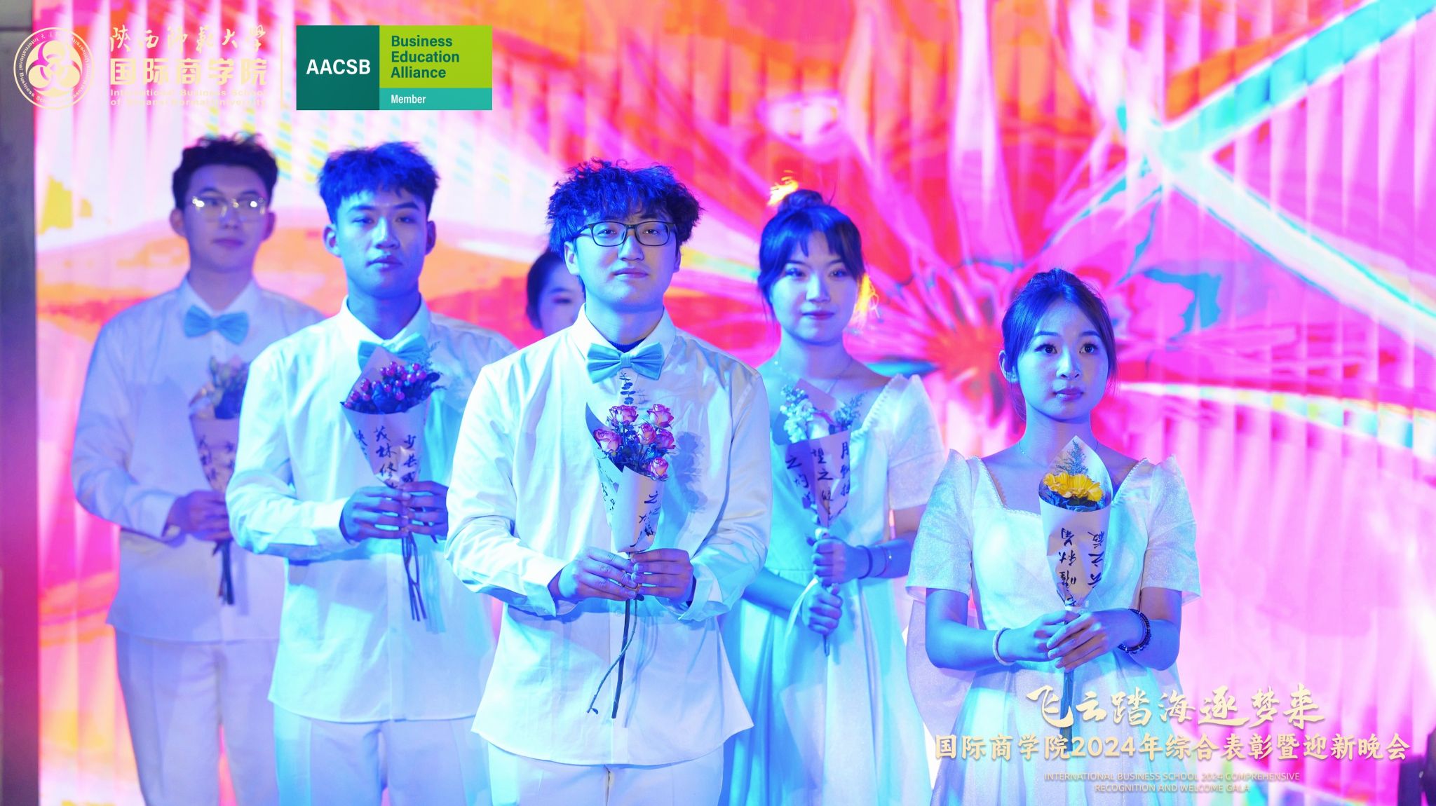 晚会上,来自学院的300余名研究生、本科生为现场观众呈现了一场精彩的视听盛宴。开场舞《飞云踏海逐梦来》以灵动之姿,绘新年繁盛之景,引吭高歌,唱响时代的旋律。第一篇章现代舞《梦想嘉年华》舞步间丈量梦想无垠,汗水里浇灌成长盛放,梦想照进现实,青春永不落幕;主旋律音画时尚《见信如晤》商院才俊,细语低吟,旋律飘渺,倾吐心扉;校园轻喜剧《时间都去哪了》回忆起入学时的青涩,笑迎每一个新的开始,心中满是喜气洋洋;活力歌伴舞《赞赞陕师大》共贺祖国七十五载盛世华诞,共祝师大八秩荣光璀璨征程。第二篇章民族大联欢《星辰大海踏歌去》五彩斑斓的服饰,舞动着千年的传说,跨越山川湖海,传递和平与希望的讯息;相声《恋爱专家》妙语连珠,将恋爱中的点点滴滴娓娓道来,让我们领悟爱情的真谛,在欢笑中感受甜蜜与智慧的碰撞;古典舞剧《上春山》盎然春意随舞者轻盈的身影扑面而来,以舞蹈为语言,连接过去与未来;由蓝草吉他社带来的器乐演唱《奔·流》带着一往无前的气势,唤醒我们内心深处的热爱与渴望。第三篇章情景歌剧《紫荆花盛开》传递着团结与友爱的力量;原创爆笑喜剧《甄嬛传之谁动了朕的外卖》笑点连连,戏谑中见智慧;舞蹈串烧《童心向未来》续写着属于我们的童话世界;现代舞《主人公》在每一次律动中释放力量,作为自己生命的主人公,书写着独一无二的故事。最后,晚会在屈晓倩、杨涛、张博雯等及白菜官网博雅合唱团联袂演唱的《歌声与微笑》中落下帷幕。