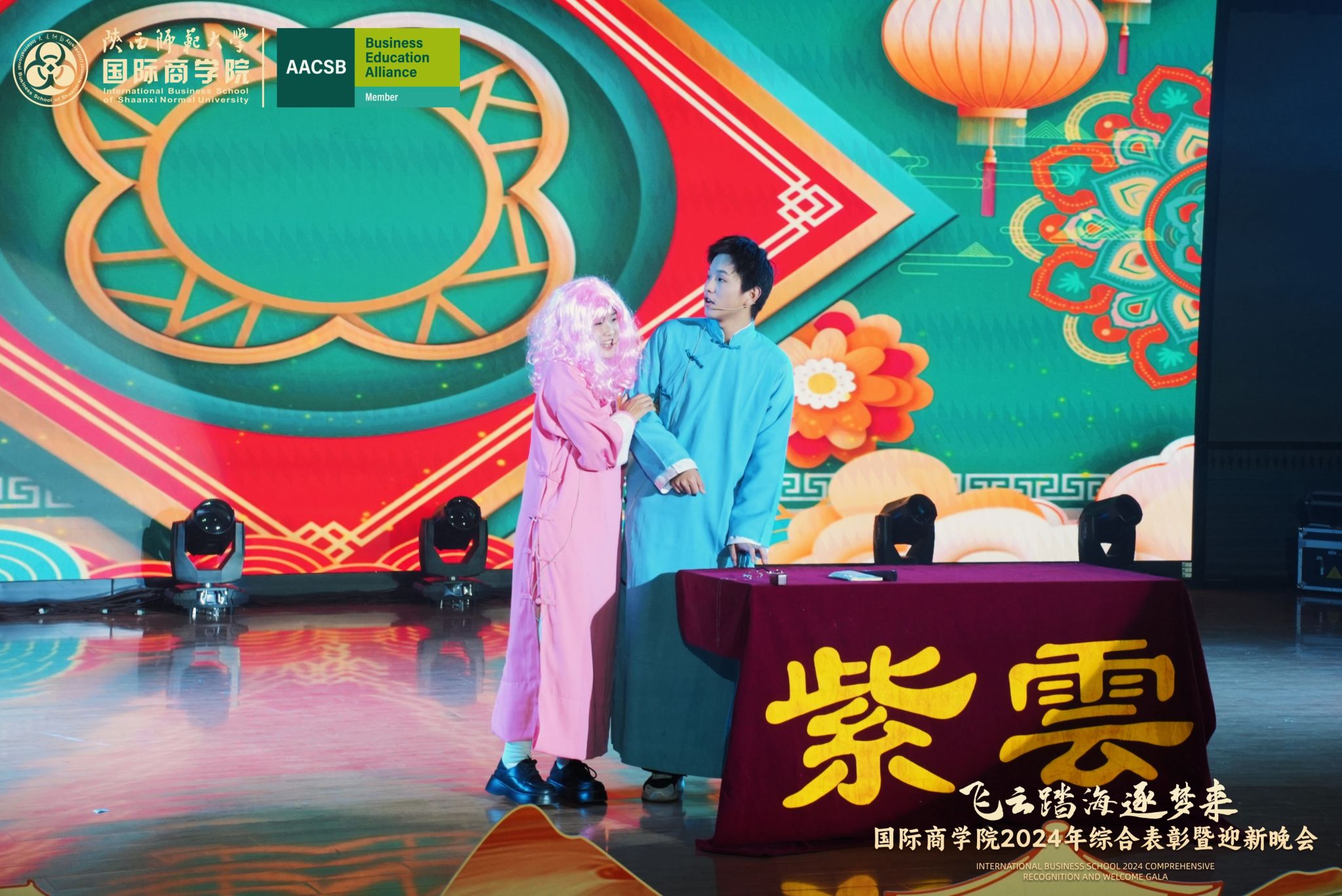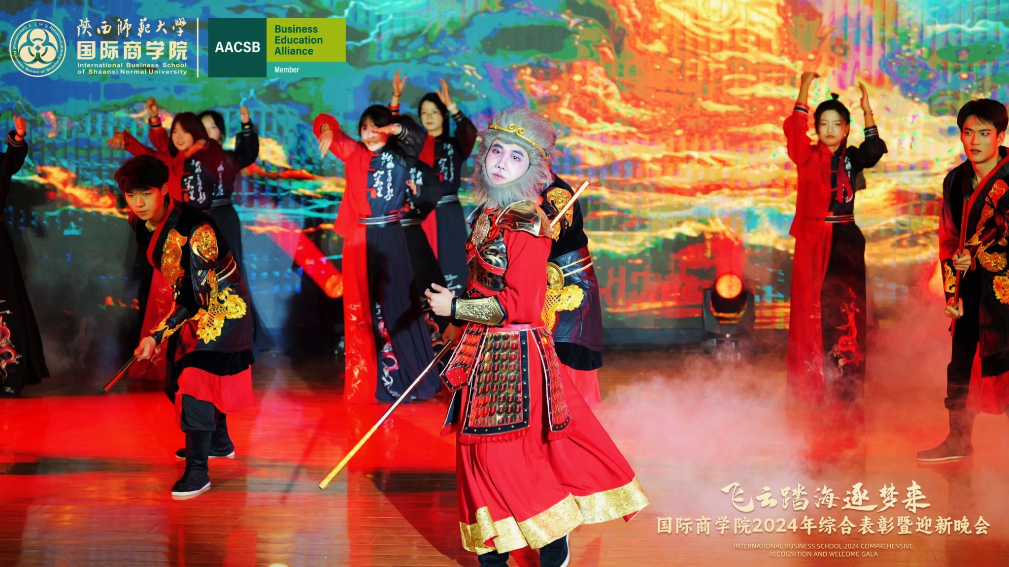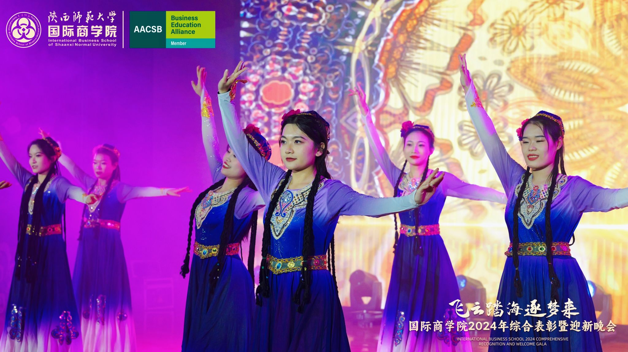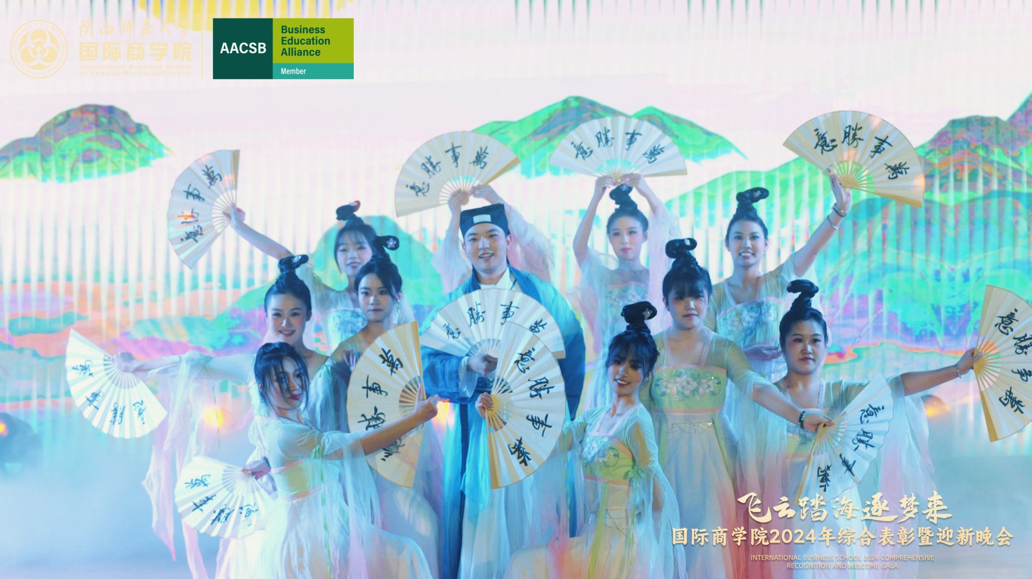 晚会上,来自学院的300余名研究生、本科生为现场观众呈现了一场精彩的视听盛宴。开场舞《飞云踏海逐梦来》以灵动之姿,绘新年繁盛之景,引吭高歌,唱响时代的旋律。第一篇章现代舞《梦想嘉年华》舞步间丈量梦想无垠,汗水里浇灌成长盛放,梦想照进现实,青春永不落幕;主旋律音画时尚《见信如晤》商院才俊,细语低吟,旋律飘渺,倾吐心扉;校园轻喜剧《时间都去哪了》回忆起入学时的青涩,笑迎每一个新的开始,心中满是喜气洋洋;活力歌伴舞《赞赞陕师大》共贺祖国七十五载盛世华诞,共祝师大八秩荣光璀璨征程。第二篇章民族大联欢《星辰大海踏歌去》五彩斑斓的服饰,舞动着千年的传说,跨越山川湖海,传递和平与希望的讯息;相声《恋爱专家》妙语连珠,将恋爱中的点点滴滴娓娓道来,让我们领悟爱情的真谛,在欢笑中感受甜蜜与智慧的碰撞;古典舞剧《上春山》盎然春意随舞者轻盈的身影扑面而来,以舞蹈为语言,连接过去与未来;由蓝草吉他社带来的器乐演唱《奔·流》带着一往无前的气势,唤醒我们内心深处的热爱与渴望。第三篇章情景歌剧《紫荆花盛开》传递着团结与友爱的力量;原创爆笑喜剧《甄嬛传之谁动了朕的外卖》笑点连连,戏谑中见智慧;舞蹈串烧《童心向未来》续写着属于我们的童话世界;现代舞《主人公》在每一次律动中释放力量,作为自己生命的主人公,书写着独一无二的故事。最后,晚会在屈晓倩、杨涛、张博雯等及白菜官网博雅合唱团联袂演唱的《歌声与微笑》中落下帷幕。
