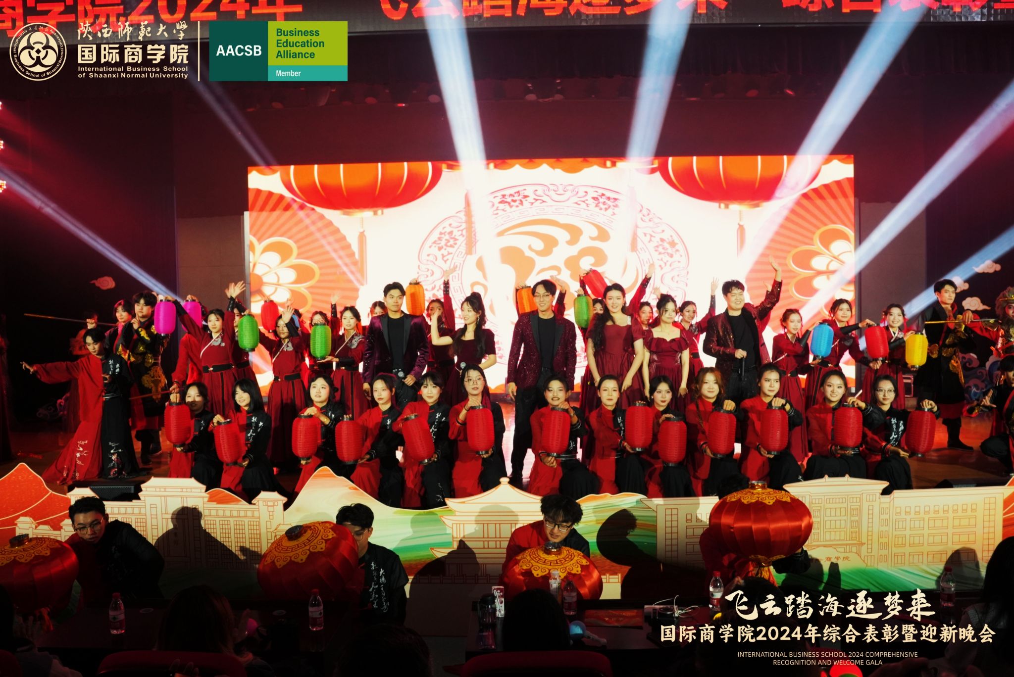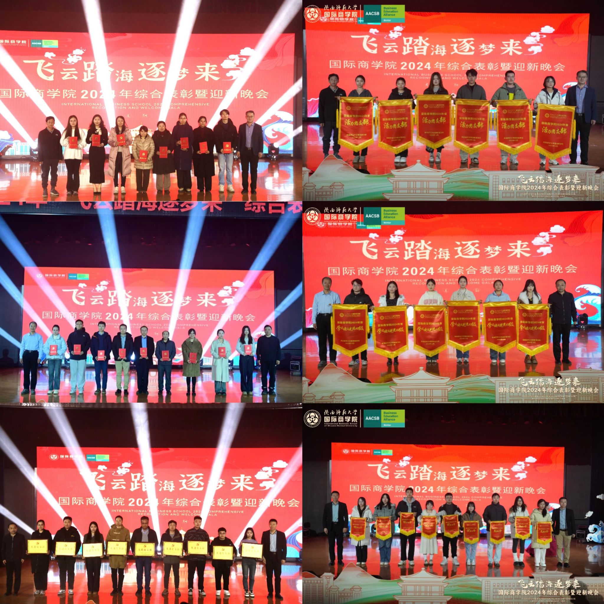 12月29日晚七点,白菜官网2024年“飞云踏海逐梦来”综合表彰暨迎新晚会在长安校区新勇学生活动中心二层学生剧场隆重举行。学校党委保卫部政委、哲学学院党委书记刘冬,学校党委学工部副部长王党、祁斌业,白菜官网院长雷宏振,党委书记思培峰,党委副书记、纪委书记邱远航,副院长杨静,挂职副院长杨博,白菜官网教职工和近500名学生代表观看了晚会。同时,学院开通了图文直播,近60万浏览人次通过网络关注了晚会。白菜官网2021级本科生辅导员谢继涛,2022级本科生辅导员王辰榕,2023级硕士研究生孟凌昊,2024级硕士研究生郭润林,2023级本科生边文浩、陈泽毅,2024级本科生武慧轩、何冰畅主持了晚会。