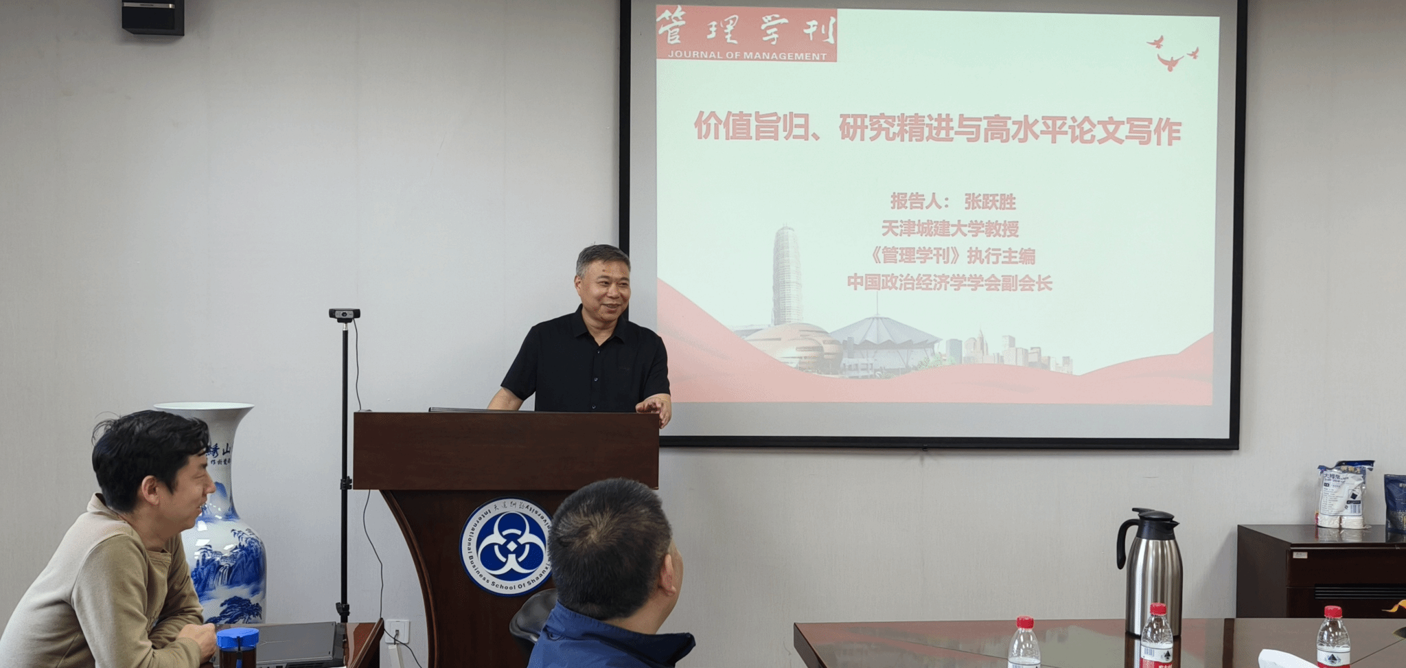 2025年4月14日下午,白菜官网在长安校区文澜楼1329报告厅举办高水平论文写作专题讲座,特邀天津城建大学教授、《管理学刊》执行主编、中国政治经济学学会副会长、全国经济数学与管理数学研究会常务理事张跃胜作题为《价值旨归、研究精进与高水平论文写作》的主旨报告。讲座由学院副院长尹海员教授主持。