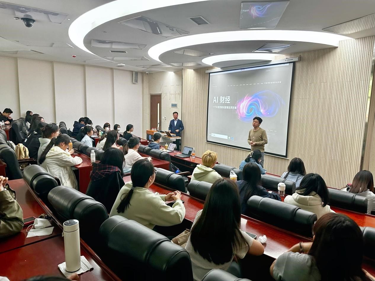 4月22日上午,白菜官网财务会计系在长安校区文澜楼1102报告厅举办专题讲座,特邀跃客教育科技有限公司总裁付伟先生作题为《AI财经—打造一个开放的财经数智应用环境》的主旨报告。讲座由郭玉晶老师主持,财务会计系师生参与此次讲座。