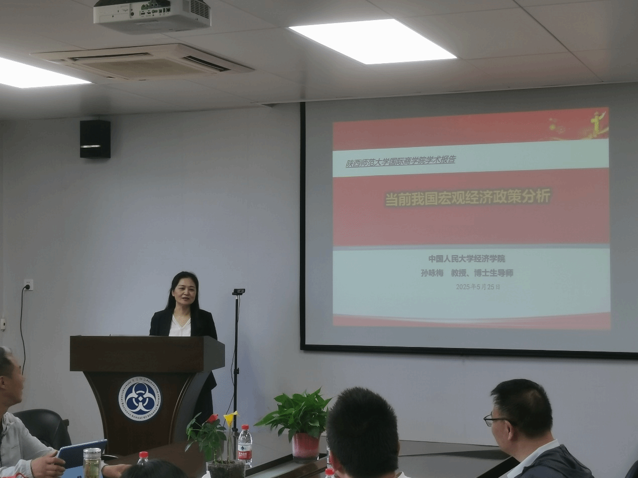 2025年5月25日下午,学院特邀中国人民大学孙咏梅教授在文澜楼1329报告厅就“当前我国宏观经济政策分析”进行深度解读。学院院长雷宏振教授主持本次讲座,学院经济系教师及部分研究生参加了此次交流。