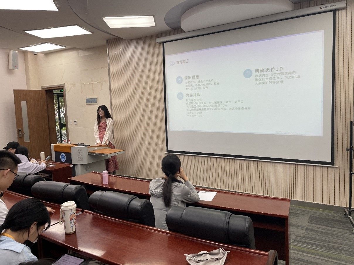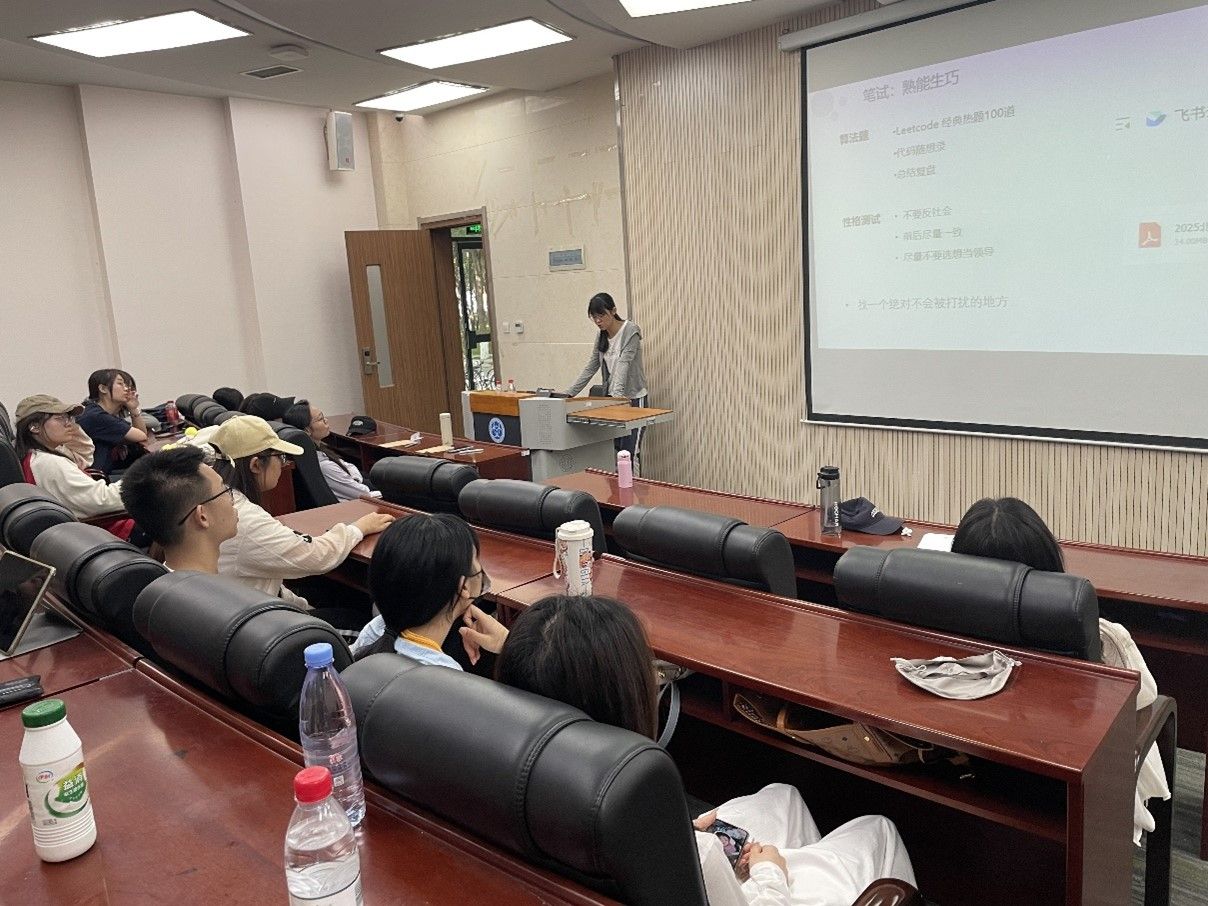 下午的交流会由2022级大数据管理与应用专业本科生王颖和梁梓荣主讲,杨娜老师主持会议,商务智能与数据科学系2022、2023级本科生参与此次会议。