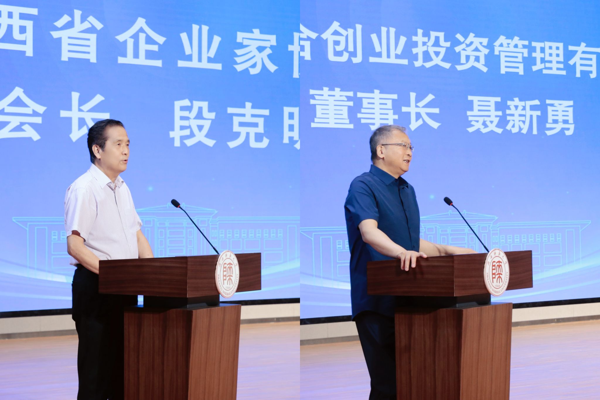 陕西省教育厅副厅长吴振磊、上海众合创业投资管理有限公司董事长聂新勇、陕西省企业家协会会长段克明分别致辞。