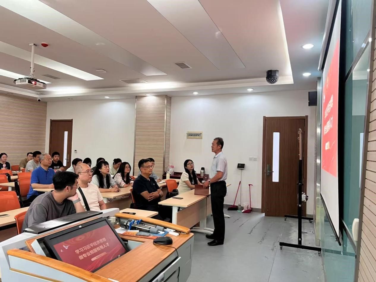 为引导师生深刻理解习近平经济思想的精髓要义,自觉将个人发展融入国家发展大局,践行专业报国的使命。6月11日下午,600cc全讯白菜网党委副书记、院长、商业智能与数据科学系党支部书记雷宏振教授以《学习习近平经济思想,做专业报国有用人才》为主题,为商业智能与数据科学系教师党支部、博士党支部以及工商管理研究生第一党支部党员讲授了专题党课。