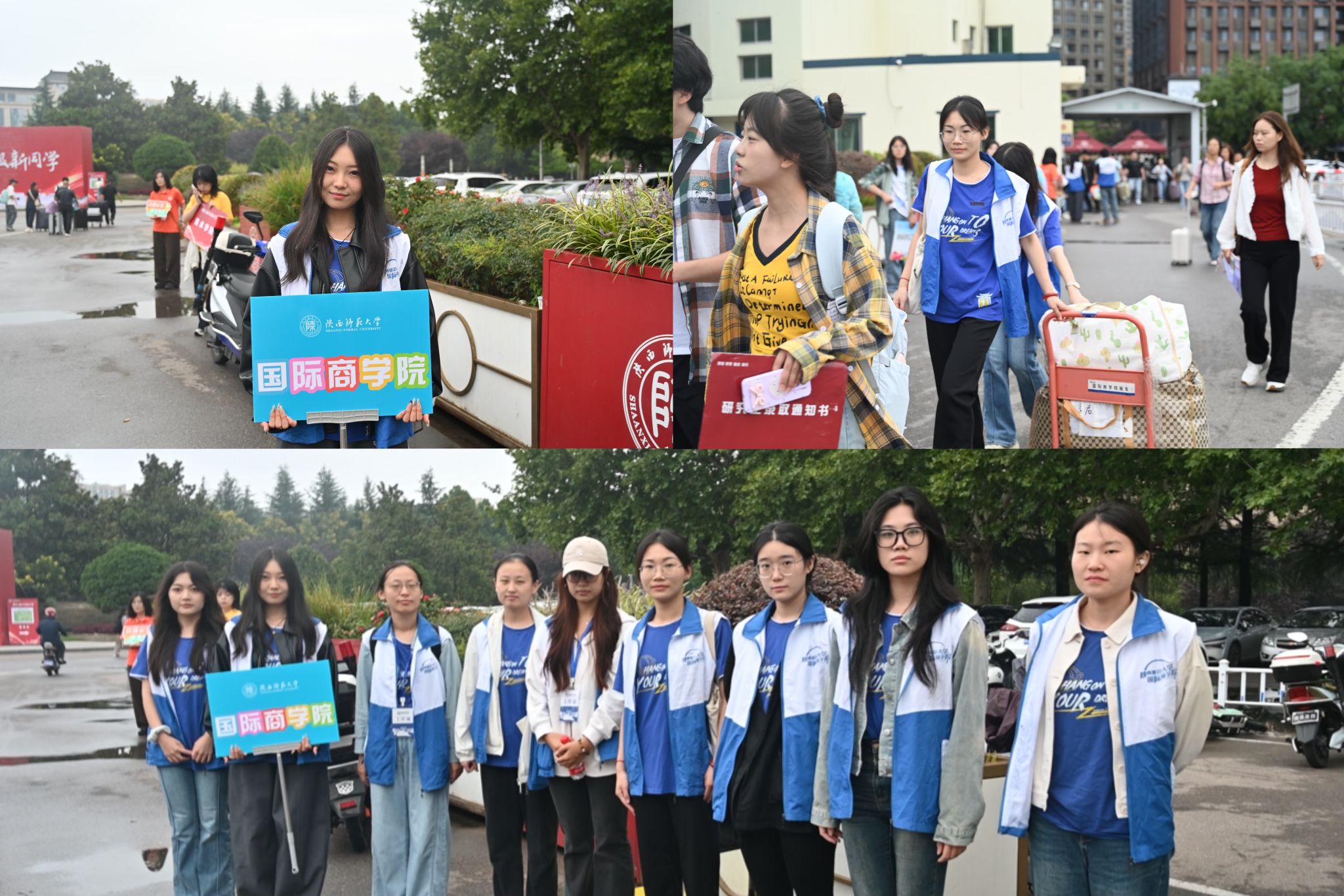 校门接应组手举迎新牌,穿梭在人群之中,率先点亮新生踏入校园的初印象。帐篷签到组早已准备就绪,志愿者们精心布置签到处,用清晰的指引和贴心的提示,帮助新生准确定位,并为他们发放校园卡和校徽。行李搬运组的志愿者们手提肩扛,穿梭于校门与楼宇之间,用实际行动向新同学们表达了最热烈的欢迎。