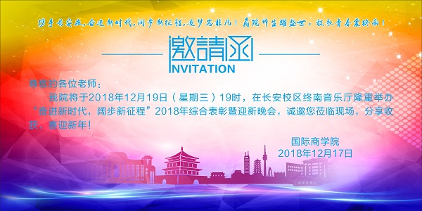 为增强先进集体和优秀学生的典型示范引领作用,喜迎新生和新年,活跃学院文化生活,丰富学院人文气息,加强师生间交流,学院将举办“奋进新时代,阔步新征程”2018年综合表彰暨迎新晚会。